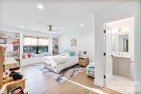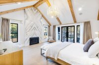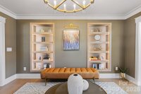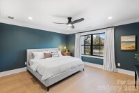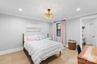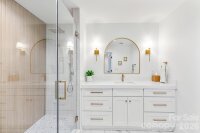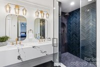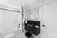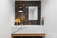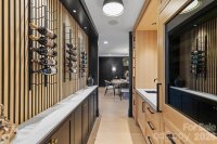 Set in South Charlotte’s Montibello neighborhood & convenient to prestigious schools in South Park & South Charlotte, along with Carmel Country Club & Quail Hollow Club, this 6BR/6.5BA home is intentionally designed w/ a focus on craftsmanship, flow, & livability—every detail thoughtfully laid out & intentionally designed. From the entry, custom modern molding, architectural millwork, decorative wood paneling, & wood-accented ceiling details establish a refined tone. 7.5†engineered white oak floors run throughout, paired w/ tile selections sourced exclusively from Queen City Stone & Tile & lighting curated by Lumi Lighting & Home Design. The kitchen anchors the home w/ custom rift-sawn white oak cabinetry, a 12’ black island, Calacatta Castana quartz 2.5†mitered waterfall countertops, pot filler, prep sink w/ reverse osmosis filtration faucet, & a concealed scullery w/ freezer & refrigerator drawers plus extensive pantry storage. A full suite of GE Monogram custom panel appliances is anchored by a 48†dual-fuel range w/ six burners & built-in griddle, accented by a Black Venetian plaster custom range hood. Built-in refrigerator/freezer & two fully integrated dishwashers blend seamlessly into the cabinetry, while a microwave drawer & 36†Kohler Whitehaven farmhouse sink complete the workspace. The kitchen transitions seamlessly into the great room w/ 24’ ceilings, anchored by a floor-to-ceiling Black Venetian plaster fireplace custom-crafted by a local artisan & framed by architectural beams. The dining room features custom millwork & is finished in SW Tricorn Black for a dramatic yet sophisticated setting. A wet bar/wine wall connecting the kitchen & dining room includes a Wine Sommelier refrigerator, Blanco Diamond SILGRANIT prep sink, & custom rift-sawn white oak cabinetry. The home features front & back staircases. Living spaces include a main-level primary suite & a secondary primary upstairs, offering flexibility for multi-generational living or guest retreat. The main-level primary features vaulted ceilings w/ architectural beams, a matchbook porcelain slab gas fireplace, soundproofing for privacy, & a spa-caliber bath w/ freestanding soaking tub, oversized shower w/ rain head + 2 additional heads, a two-person Sunlighten Signature infrared sauna w/ interior lighting & integrated speakers, & a fully customized closet w/ center island, 17 drawers, & laundry pullouts. The main-level office offers floor-to-ceiling built-ins, shiplap accent wall, integrated desk, & modern trim detailing. The pool house kitchen features Cristallo quartzite countertops w/ undercounter LED lighting, dishwasher, beverage fridge, & hydraulic bar window opening to the pool deck, along w/ indoor lounging space & full bath. Outdoor living includes a heated gunite saltwater pool w/ integrated spa, tanning ledges, water features, & custom leathered marble hardscaping, supported by landscape irrigation & outdoor audio speakers. A covered back porch adds a second gas fireplace & access to the main-level primary. Additional highlights include wiring in place for future porch heaters front & back, plus hot & cold exterior spigots for a future outdoor shower. Upstairs, white oak flooring continues, along w/ a built-in homework center w/ integrated desk, shelving, & storage. In addition to the secondary primary, there are four additional bedrooms, all w/ walk-in closets. Bedroom layout includes four ensuite baths, one direct-access bath, & one shared hall bath. Two upstairs bedrooms are soundproofed. Delta & Brizo fixtures throughout. Integrated surround sound throughout the main level & bonus room, w/ invisible architectural speakers in the kitchen, plus surround sound on both covered porches & a dedicated outdoor audio system serving the pool area.