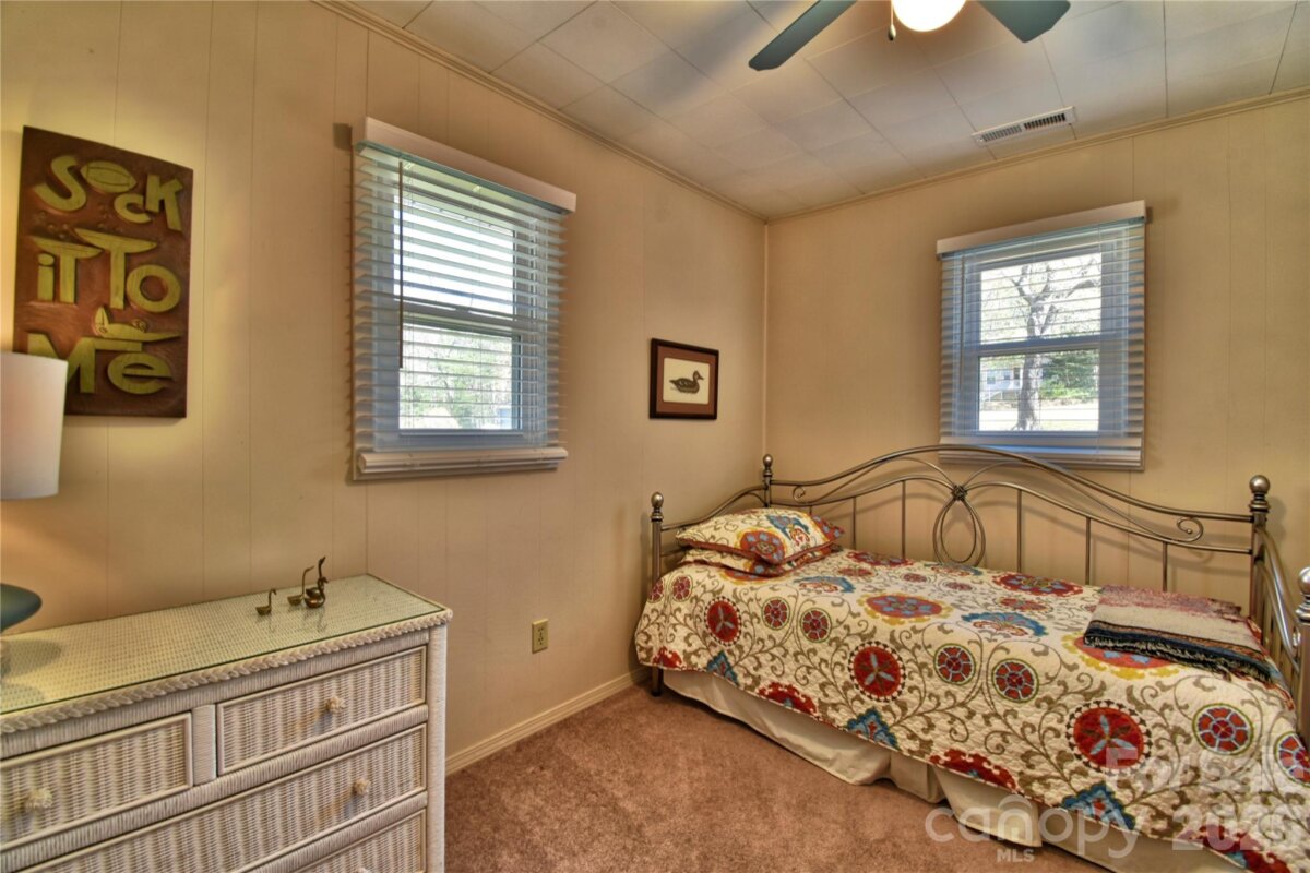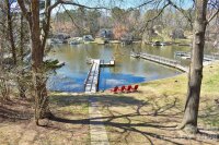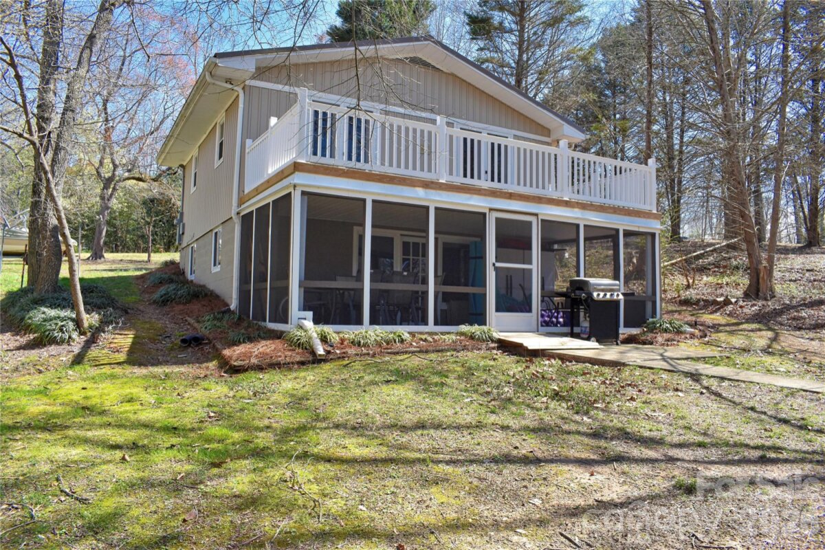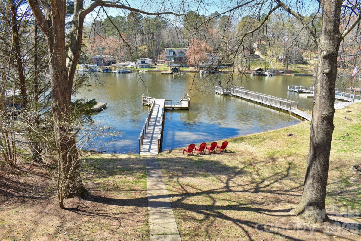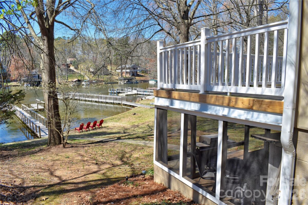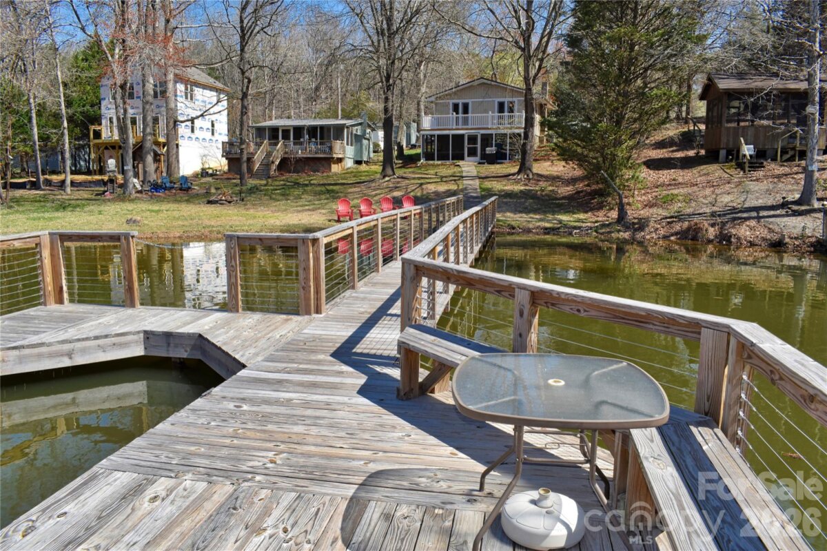 This waterfront home is located off Badin Lake's main channel in the cove between Pinehaven and Lake Forest. All-stationary pier in excellent condition, with boat slip. Cube/Yadkin pier #802. Great swimming and fishing areas. Easy walk to the water and the pier along the concrete walkway. The lower level features an open kitchen and living area along with the 11x24 lakeside screened porch. Lakefront grilling area. The upper level includes 3 bedrooms, all of which have ceiling fans, windows, and closets. 2 of the bedrooms have water views and include doors with direct access to the upper lakeside deck. Some furniture negotiable. County water & sewer. Gravel driveway; ample parking. Private Pinehaven boat landing within the neighborhood. Convenient to the lake’s marinas that provide dining, gas, and watercraft rentals. The Uwharrie National Forest nearby is a great destination for camping, hiking, horseback riding, and ATV/OHV trails. Within 1 hour from Charlotte, Greensboro, Winston-Salem, and Pinehurst.