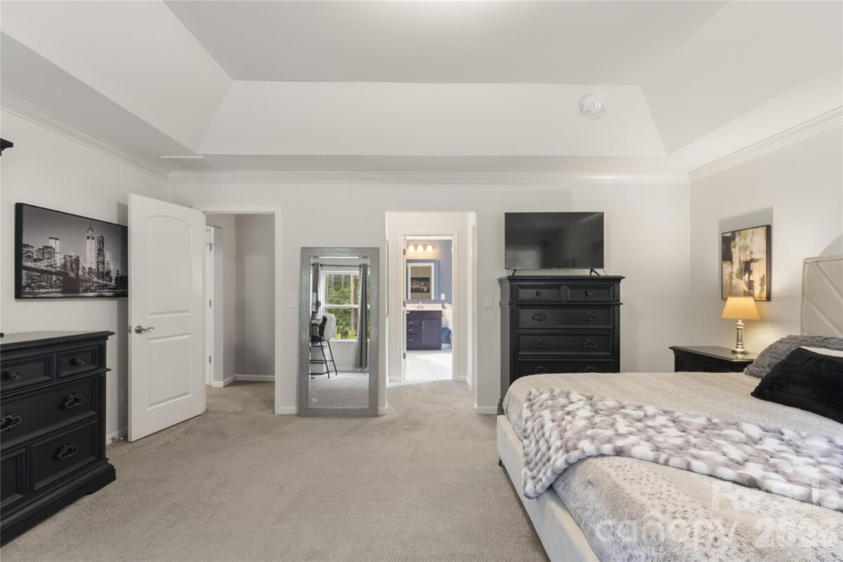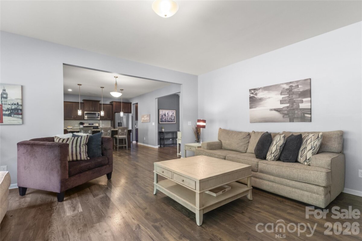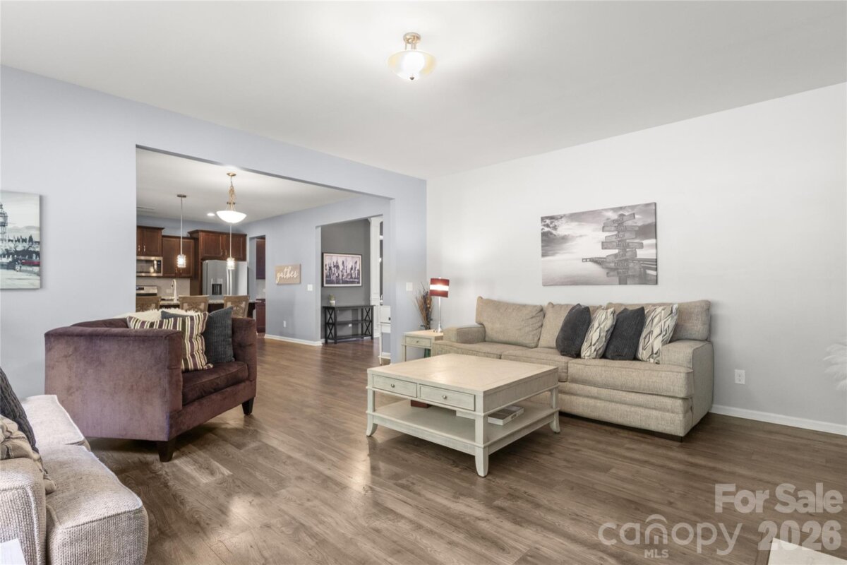 Welcome to this beautiful 5-bedroom, 3.5-bath home in the gated Prestwick community, where comfort, space, and a private outdoor setting come together beautifully. From the moment you step inside, you’ll appreciate the open layout, inviting great room with gas log fireplace, and thoughtful floor plan that offers flexibility for today’s lifestyle. The main level features a rare and valuable guest bedroom with its own full bath, making it an ideal retreat for visitors, extended family, or anyone needing a private first-floor space. The kitchen is both functional and stylish with granite countertops, gas cooking, breakfast bar, walk-in pantry, and butler’s pantry, all flowing easily into the formal dining room and living areas. Upstairs, a spacious bonus room provides extra room for recreation, media, or play, along with four additional bedrooms including the oversized primary suite. The primary bath features dual vanities, a garden tub, separate shower, and a large walk-in closet. A second-floor laundry room adds convenience right where you need it most. Step outside and discover one of this home’s biggest highlights: the backyard oasis. Backing to a private wooded area, the outdoor living space is designed for both entertaining and unwinding, featuring a large lanai, additional patio space, and a fire pit area perfect for evenings under the stars. All of this is tucked inside a desirable gated community just minutes from Ballantyne, Carolina Place Mall, and countless shopping and dining destinations.
