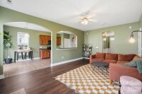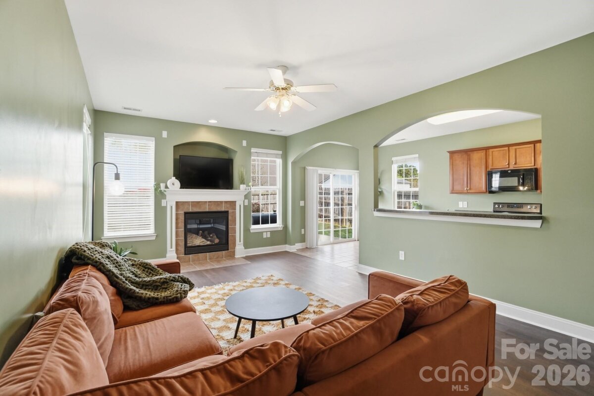 No HOA! Welcome to this well maintained home featuring new LVP flooring throughout, fresh paint, & a versatile bonus room perfect for a 4th bedroom, home office, or flex space. Enjoy the open concept living area, which includes a lovely fireplace and flows seamlessly into the eat-in kitchen. The kitchen includes upgraded cabinetry, tile flooring, newer microwave, newer dishwasher, 2 pantries, and plenty of counter space. Leading from the kitchen in to the dining room, you'll find wainscotting detail all around and bright light filling the room from its large window. Unwind in the primary suite which features vaulted ceilings, tons of natural light, and two spacious walk-in closets. You'll love the primary bath, which offers a soothing retreat with beautiful green subway tile and a garden tub, blending character and comfort. Enjoy relaxing on the covered rocking chair front porch or entertaining in the flat, fenced backyard with patio-ideal for grilling, pets, or gatherings. Located in a quiet, sidewalk-lined neighborhood convenient to shopping, dining, and major routes. HVAC (2019) and Water Heater (2022), LVP flooring Down (2023) LVP flooring Up (2024), Dishwasher (2024)