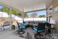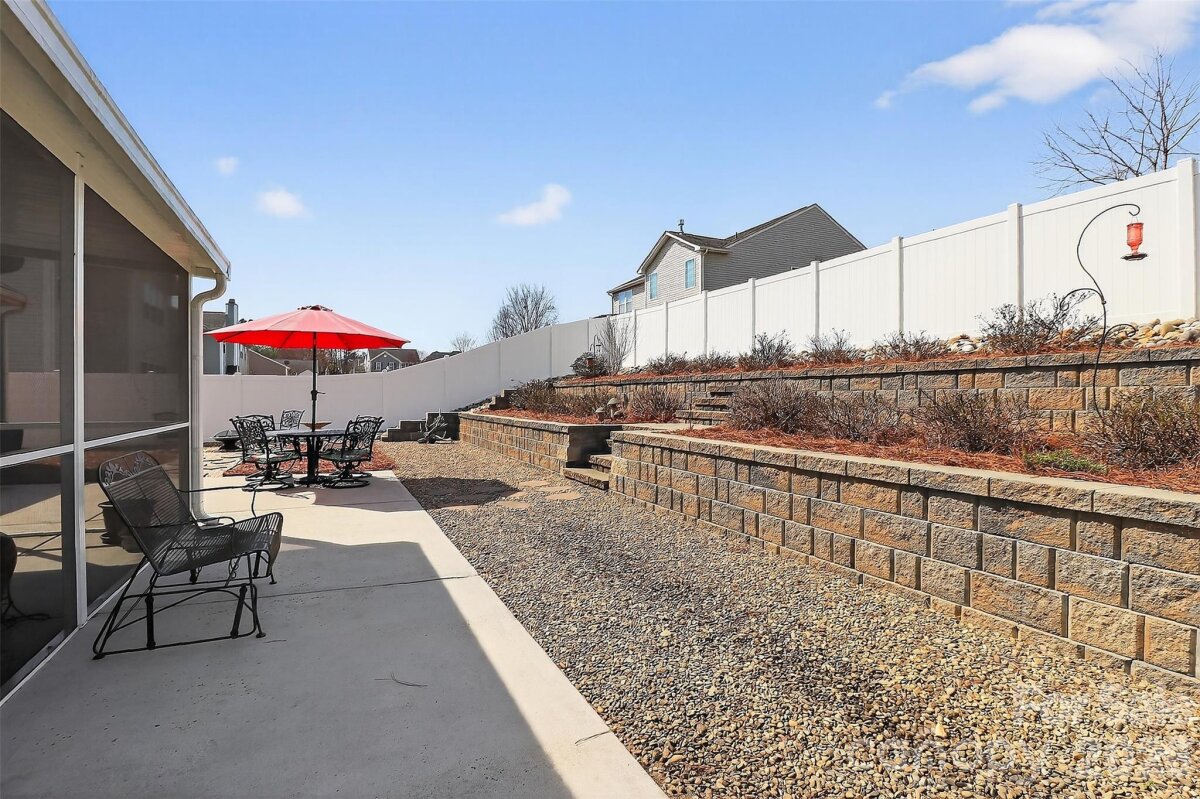 Immaculate 3BR/2BTH home in desirable Oaks at Clover community. Amazing lot with upgrades galore. This resort-style fenced back yard features custom paver retaining walls and mulch beds, upscale landscaping plants and a fire pit area that makes it perfect for outdoor entertaining. Buyers are going to love it when all the plants come in to bloom and it feels like a private oasis. The spacious screened porch and extended patio area are great for dining or just relaxing. Step inside this gorgeous home that shows like a model! The generous size great room with beautiful wood flooring adjoins to the large kitchen making it truly an open floorplan. The primary suite is large and has its' own walk-in closet. Secondary bedrooms are both generous in size with ample closet space. Another great feature is the whole house water filtration system. And the laundry room has its' own folding table. The owners are extremely neat and clean and have taken great pride in caring for this house. A must see!