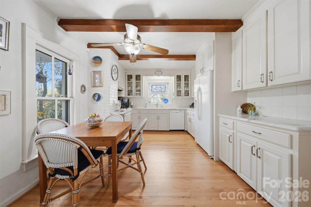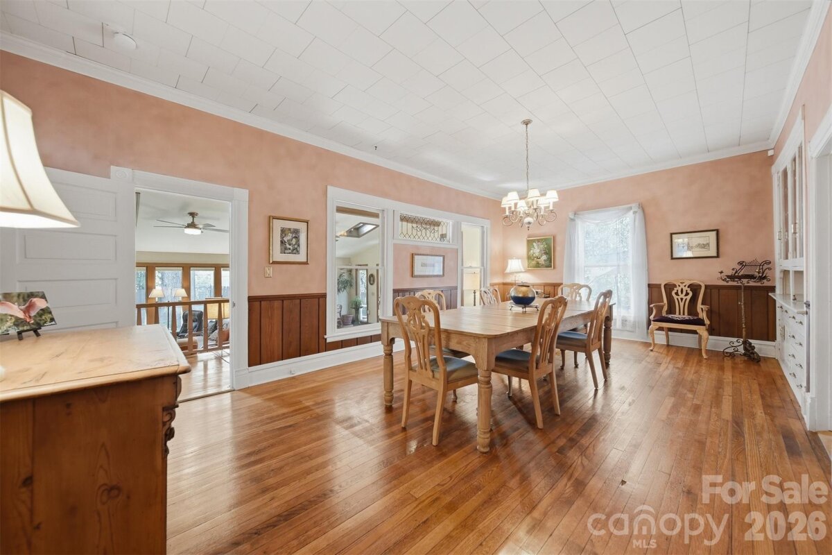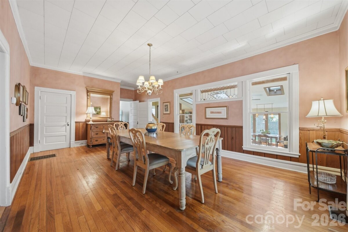 Introducing a special piece of Hickory’s history: the John A. Lentz House (circa 1890). This beautifully maintained two-story home, on the National Register of Historic Places, blends late Classical Revival style with the rich industrial and community legacy of its founder, John A. Lentz. From the moment you step into the foyer, with its stunning John Thomas Falcone leaded glass, the home’s timeless charm is clear. The main level combines historic beauty with modern comfort, offering a formal living room with a wood-burning fireplace and a cozy den featuring wood paneling and a mantel salvaged from the previous owner’s mountain house. The perfect retreat for quiet evenings. The inviting kitchen opens to a relaxing porch for easy indoor-outdoor living; the dining room is complete with a custom-built table (that remains) and gorgeous built-in cupboards. The family room boasts floor-to-ceiling windows, skylights, a gas fireplace, built-ins, and access to the back deck. A spacious primary suite with a walk-in closet, and full bath, is also conveniently located on the main floor. Upstairs, you’ll find three bedrooms and a shared bath providing amble space for family or guests. An additional bonus walk-in attic with a cedar closet. Original details like a central staircase with heavy square newel, molded handrail, and turned balusters; framed by a Queen Anne-style sash window. Outside, twin porches stretch the length of the home, overlooking a landscaped backyard with multiple decks and gathering spaces. A charming brick carriage house (circa-1915) offers a garage and storage rooms. The almost half acre site includes mature landscaping with pines, oaks, dogwoods and azaleas. Situated in the heart of Northwest Hickory in the sought-after Oakwood school district, this home is a rare chance to own a piece of history with all the comforts of today.