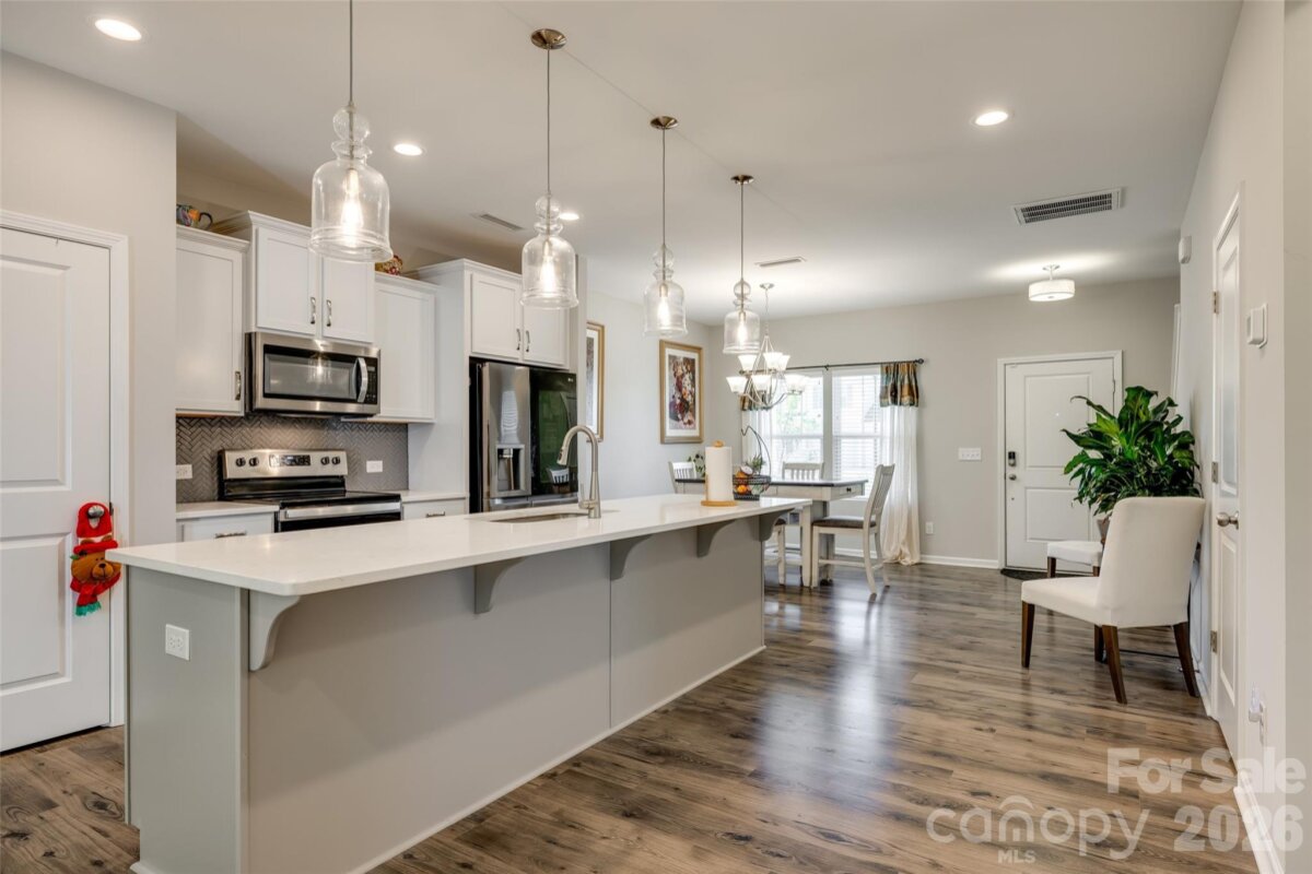 Welcome home to this beautifully maintained 3-bedroom, 2.5-bath residence featuring a desirable first-floor owner’s suite and a versatile upstairs loft—perfect for a secondary living space, home office, or play area. Ideally located with easy access to Concord and downtown Kannapolis, you’ll enjoy nearby shopping, dining, and sports attractions. Designed with both comfort and connection in mind, the open-concept floor plan offers spacious living areas that flow seamlessly into a stunning kitchen complete with quartz countertops, tile backsplash, stainless-steel appliances, and a large center island—perfect for family gatherings and entertaining. Unwind in the private owner’s suite or step outside to a beautifully landscaped yard, ideal for relaxing evenings or hosting guests. This home offers the perfect blend of style, functionality, and convenience—ready to welcome you home.