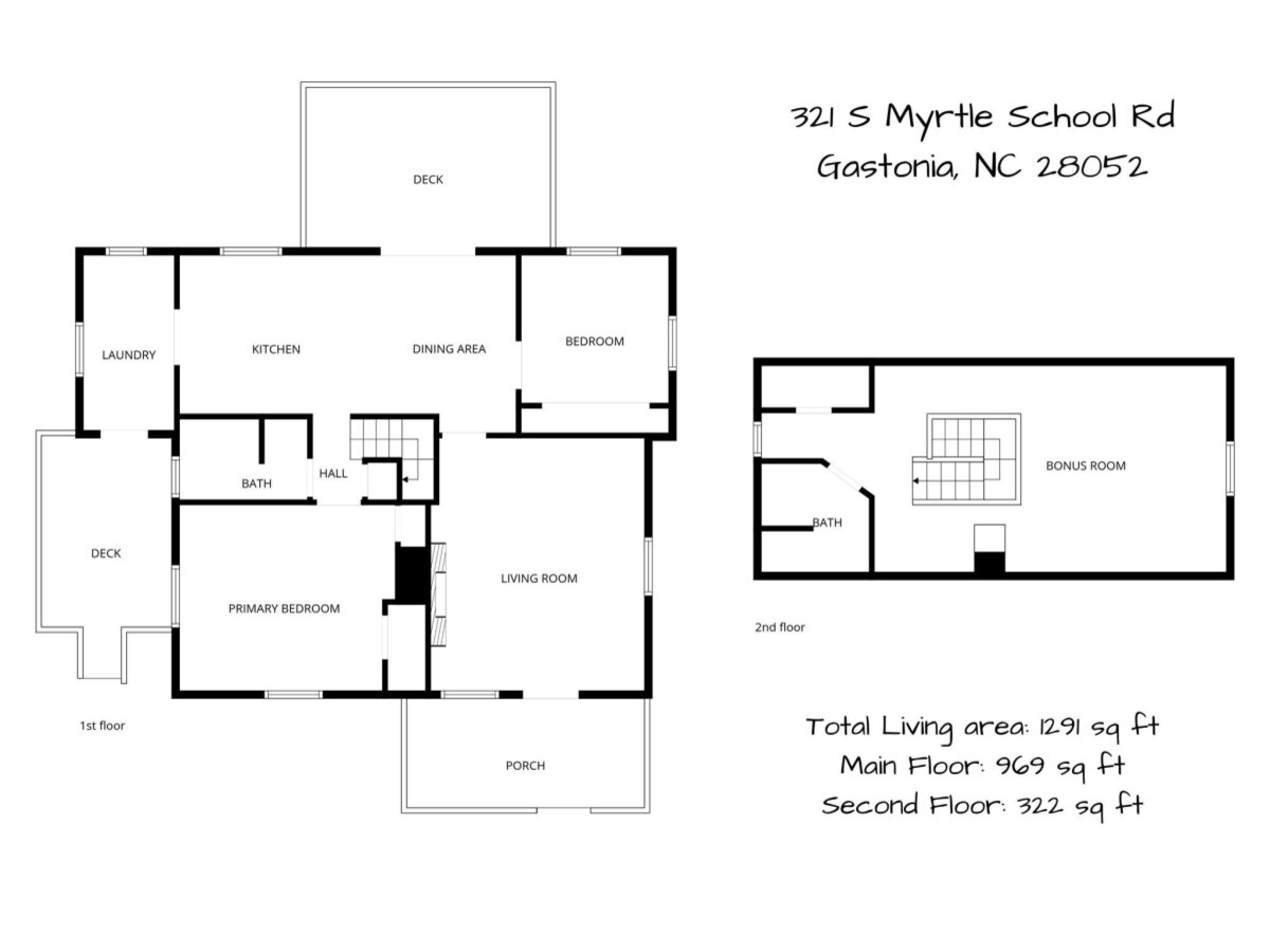 Completely remodeled and move-in ready, this charming home blends modern updates with functional living spaces. Offering more than 1,290 square feet of total living area, the thoughtfully designed main level features a spacious living room with a modern fireplace, mantel, and wall design. A great kitchen with a tile backsplash and stainless steel appliances, including the refrigerator, an adjoining dining area, a primary bedroom on the main floor, and convenient laundry access. Upgrades include new windows, flooring, roof, paint, appliances, tubs, vanities, and light fixtures. A second main-level bedroom adds flexibility for guests or home office use. Upstairs, the large bed/bonus room with full bath provides the perfect space for a media room, private suite, or flex living area. Enjoy outdoor living with both a welcoming front porch and multiple deck spaces ideal for relaxing or entertaining. Situated on a generous lot with no HOA, this home delivers comfort, versatility, and modern appeal—an excellent opportunity for buyers seeking quality renovation and functional design in a great location.