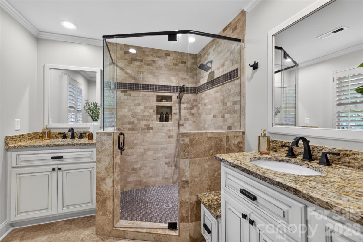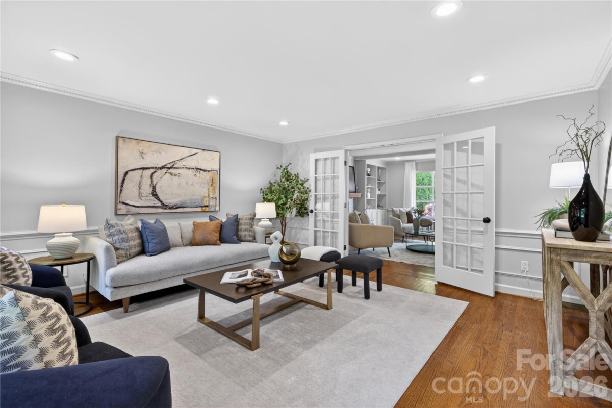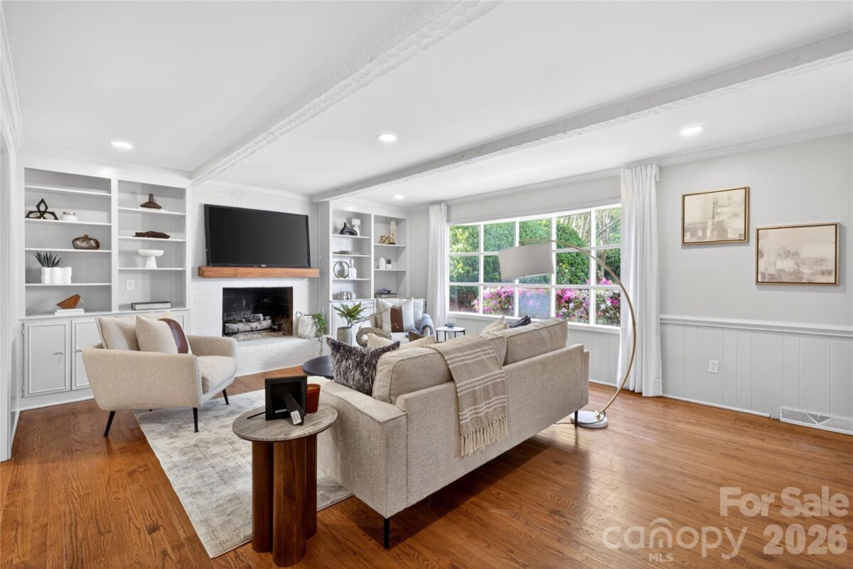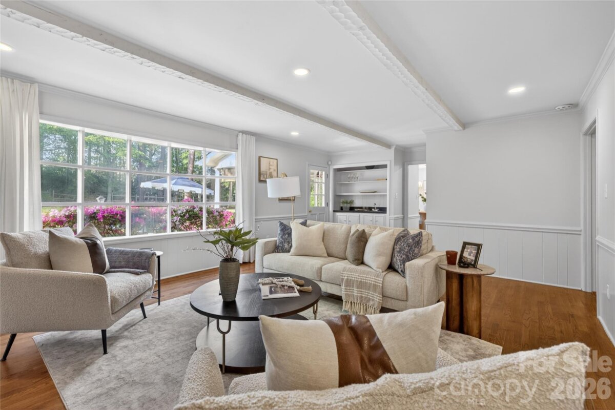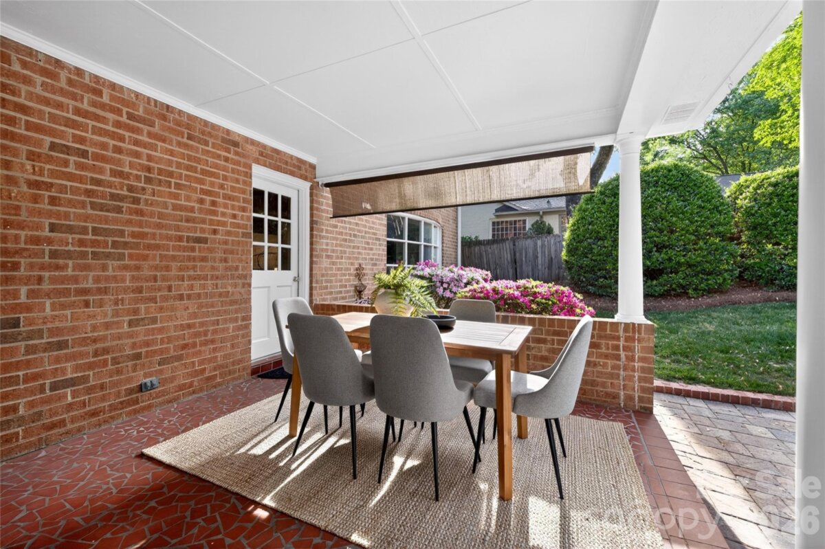 Located in Sharon Woods—one of South Charlotte’s most sought-after neighborhoods—this classic full-brick home offers timeless appeal. A charming gas lantern is a warm welcome at the driveway. Elegant formal living and dining rooms provide the perfect backdrop for hosting friends and family, while the eat-in kitchen overlooks the patio, pool & private backyard. The spacious den is perfect for relaxing or entertaining, featuring a wet bar, built-ins & a cozy fireplace. The primary suite is generously sized and includes an updated bath along with dual closets. Secondary bedrooms and bath are equally well-proportioned, offering comfort and flexibility. Step outside to your own backyard retreat—ideal for both entertaining and quiet evenings. A covered patio allows for year-round enjoyment, while the stunning saltwater pool creates the perfect setting for lounging or hosting friends. Wonderful neighborhood with an optional HOA full of activities including holiday carriage rides, egg hunts, a Halloween parade and pizza party, supper clubs, block parties, and more. Enjoy a walkable lifestyle with easy access to the SouthPark Loop, SouthPark Mall, fine dining, and luxury shopping.
