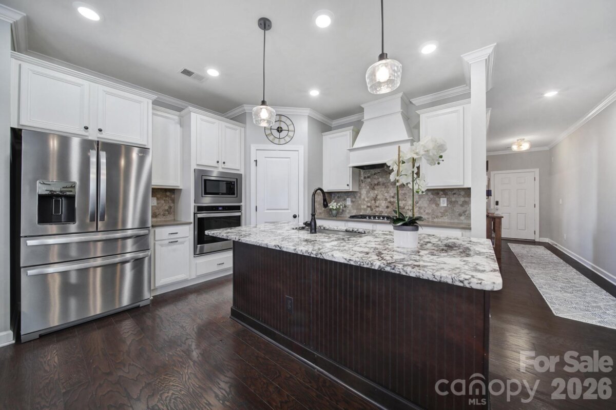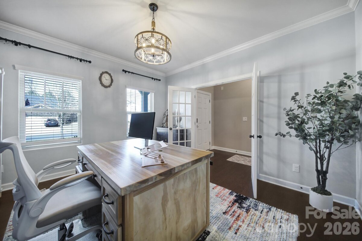 Welcome home to this charming, spacious five bedroom home with tons of upgrades in sought after Weddington school district! Through the front door you are met with a spacious dedicated office with double doors. Large Family room is open to kitchen and features warm fireplace. Large kitchen features 42 inch cabinets, beautiful granite island and gas cooktop. Added side counter with glass cabinet uppers acts as additional space for small appliances and features wine cooler! Cozy, added reading room off kitchen leads to serene screened-in porch overlooking private FENCED back yard space. Convenient bedroom and full bath downstairs. Small drop zone near garage entrance. Staircase leads you to upper level featuring open loft area and three spacious secondary bedrooms and two full modern baths! Oversized primary suite with en-suite bath featuring large tile shower and huge walk-in closet. Laundry room is also up! Wonderful pool and playgrounds round out this amazing home. Close to everything!