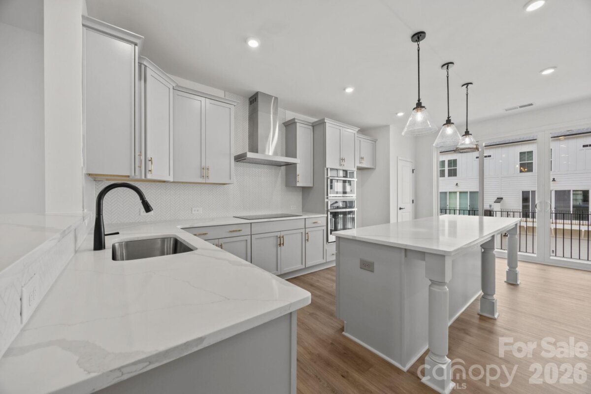 Welcome to The River District—a true master-planned community designed for the way you live, work, and play. This beautifully appointed Landon three-story townhome offers exceptional flexibility and style. The main level features a spacious flex room—perfect for a home office, game room, gym, or creative studio. Upstairs, the heart of the home shines with a gourmet kitchen showcasing quartz countertops, a built-in oven and microwave, electric cooktop, and soft-close cabinetry. The open-concept dining and living areas provide an inviting space for entertaining, with sliding glass doors leading to your private balcony—ideal for morning coffee or evening relaxation. The third level hosts a serene owner’s retreat, complete with a bright and airy bedroom and a spa-inspired bath designed for ultimate comfort. Two additional bedrooms, a full bath, and a conveniently located laundry area complete the upper floor. Every detail of this home has been thoughtfully curated, with interior design finishes individually hand-selected by our professional design team. Location truly sets this home apart. At The River District, you’re just minutes from everything you need. The community will feature resort-style amenities including a pool, clubhouse with fitness center, tennis and pickleball courts, parks, scenic trails, a working two-acre farm with an on-site farmer, and a stunning riverfront amphitheater. Experience elevated living in a vibrant community where convenience meets connection.