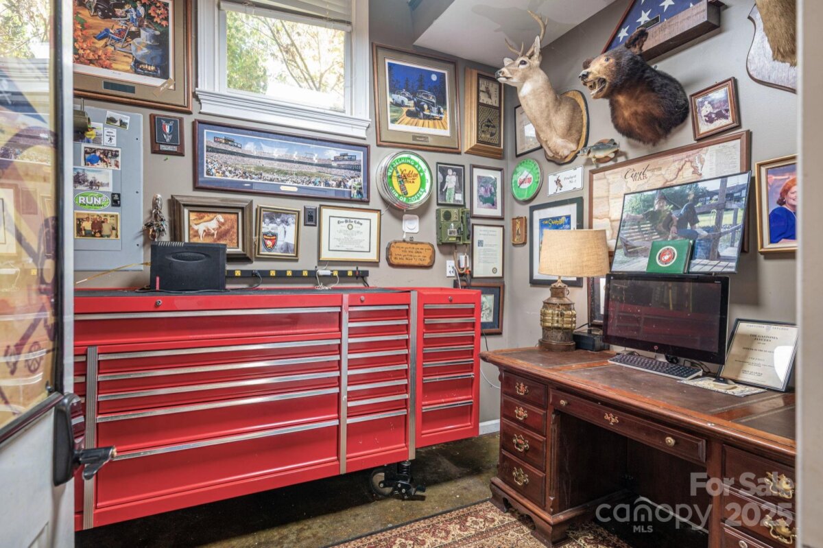Spacious home with AMAZING backyard located in the desirable Gaston Country Club area! The outdoor living space is one of a kind with a huge .95 acre private yard that has a creek, bridges and plenty of room for play and entertaining. Relax on the multi-tier decks and enjoy the beautiful peaceful views. Inside you will find over 4000 sq ft of spacious rooms and abundant storage. The main level features a formal living room with fireplace that would make the perfect home office, large formal dining room with fireplace and the primary suite also has a fireplace, private screened porch, large walk in closet and en suite with a stunning walk in shower and space for a stand alone tub or additional vanity storage. The kitchen has an island, walk in pantry, double ovens and a large breakfast area or keeping room with fireplace. Just off the kitchen there is an extra large bonus room perfect for a play or media room. The laundry room has a sink and a laundry shoot from upstairs. There are also 2 half baths on the main level for guest when entertaining. The upper level offers 3 generous bedrooms with new hardwood flooring, lots of closet & attic space and 2 spacious bathrooms. The garage is set as a man cave with split unit heating & cooling and a private office or workshop. With the large private lot and adventurous back yard its incredible that you are also in a wonderful neighborhood that is just minutes to everything - Harris Teeter, Gaston Country Club and Southampton Racquet & Swim Club are all just down the street. Easy access to shopping, restaurants and I85. Priced well below recent appraised value. You must see this one!!