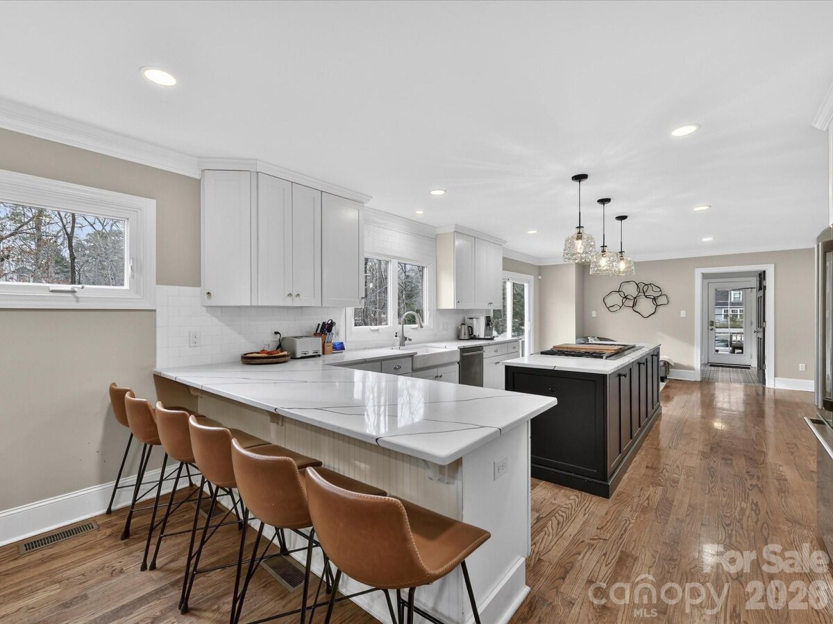 Situated on a 1.41-acre corner lot in sought-after Providence Plantation, this exceptional home offers an impressive blend of classic elegance, thoughtful upgrades, and modern functionality inside and out. A welcoming covered front porch sets the tone, while the professionally landscaped grounds feature inground irrigation, multiple frost-free spigots (well and city water), a gas line for grilling, and the peace of mind of a whole-house generator. Outdoor living is elevated with both a large deck and a screened porch, perfect for entertaining or quiet evenings at home. Inside, a two-story foyer showcases red oak hardwood floors, judge’s paneling, and a gorgeous turned staircase. The grand formal dining room with a fireplace is ideal for hosting, while the cozy family room features a gas fireplace and built-ins and opens beautifully to the kitchen, morning room and breakfast area. The chef’s kitchen is a showstopper, offering new quartz countertops, breakfast bar seating, subway tile backsplash, apron sink, butler’s pantry, Sharp microwave drawer, Bosch dishwasher, and an expansive island with a Wolf Professional gas range with double ovens and pop-up, dishwasher-safe vents. A light-filled morning room and spacious breakfast area complete this inviting space. The primary suite on the main level is a true retreat with dual walk-in closets and a spa-like bath featuring dual granite vanities, plantation shutters, a tiled soaking tub, and a luxurious subway tile and frameless glass shower. An additional bedroom suite on the main, also with a walk-in closet and private bath, offers ideal flexibility for guests or multigenerational living. A beautifully appointed powder room with judge’s paneling adds to the main-level appeal. Upstairs, you’ll find three additional bedrooms, a bed/bonus room, and two well-appointed baths, including one with granite countertops and a frameless glass tiled shower, and one with dual vanities, a tub, and a water closet. Additional highlights include a completely renovated laundry/mudroom (2023), a hybrid encapsulated crawl space with new vapor barrier and insulation, a hot water circulating system, over 400 square feet of basement storage, and a two-car garage with epoxy floor, dedicated storage room and an EV charger. This is a rare opportunity to own a meticulously maintained, thoughtfully upgraded home in one of Charlotte’s most established neighborhoods close to the Arboretum, the Promenade, and Waverly!