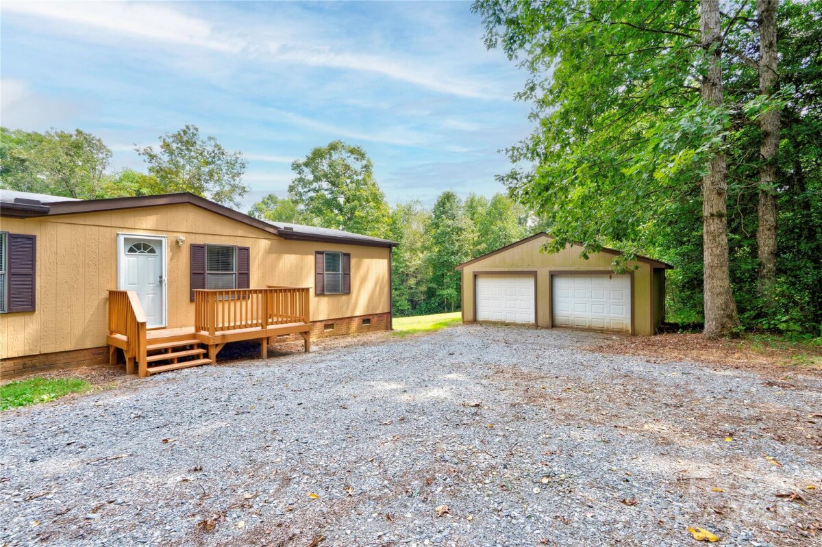 Escape the hustle and enjoy country living in this 3-bedroom, 2-bath manufactured home situated on 5.537 private acres. This property offers the perfect blend of comfort, functionality, and room to grow. Step inside to discover newer flooring, fresh interior paint, and a bright, welcoming layout. The spacious living area flows effortlessly into the kitchen, where all appliances remain—including the washer and dryer, making this home move-in ready. The primary suite features a large walk-in shower and walk-in closet. Enjoy outdoor living on the rear deck, perfect for morning coffee or evening gatherings. For those who need storage or workspace, the detached, wired double garage/workshop is a major bonus—complete with roll-up doors and room for tools, vehicles, or hobby projects. Home will have a new roof and HVAC very soon!