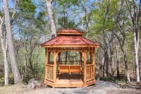California Contemporary meets Carolina serenity! Architect-designed LEED Energy Green home on 5.25 acres with indoor saltwater lap pool, sauna, and Fire & Water Zen garden. Solar passive design with Andersen windows offers radiant natural light. 3BD, 3.5BA, office, great room, with 11-ft ceilings, Brazilian cherry wood floors, and black medallion rotunda entry. Gourmet Viking kitchen with 6-burner gas range, walk-in pantry, and custom cabinetry. Primary suite includes a private courtyard with hot tub. Entertain outdoors with expansive decking and patios, a stone fireplace, a meditation waterfall pond and fire pit, and a creekside gazebo. Great room boasts cathedral ceilings and a massive stone fireplace. 1-car main level garage and 2-car garage/workshop on lower level. Newer architectural roof, fresh air system, whole house water filter, encapsulated crawlspace. Ask for list of features sheet - too many to list here. Truly one-of-a-kind private retreat!