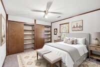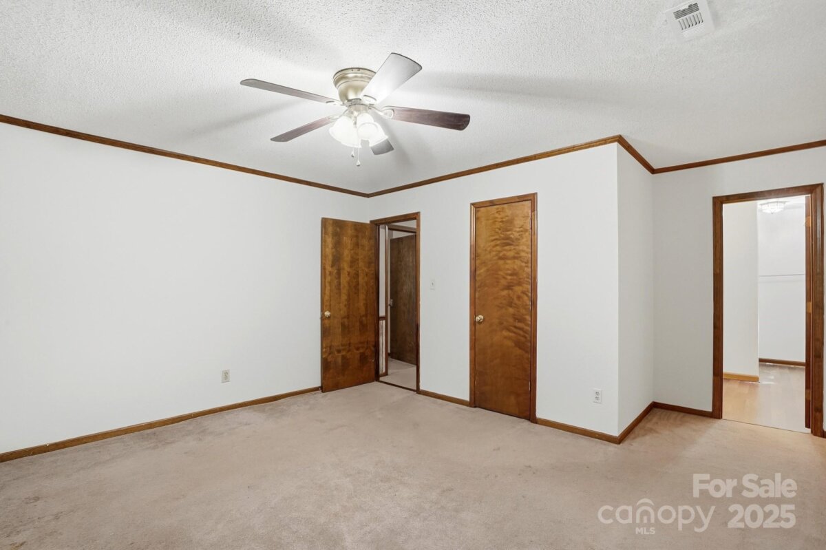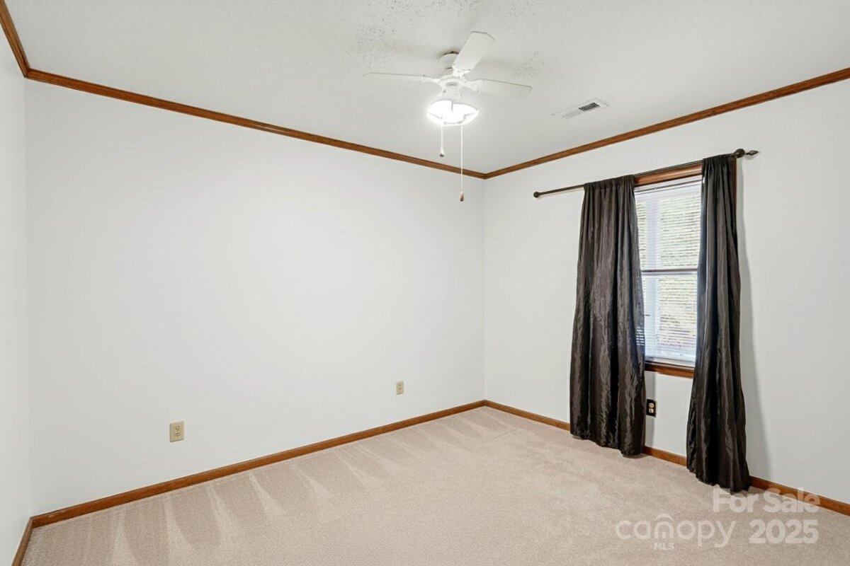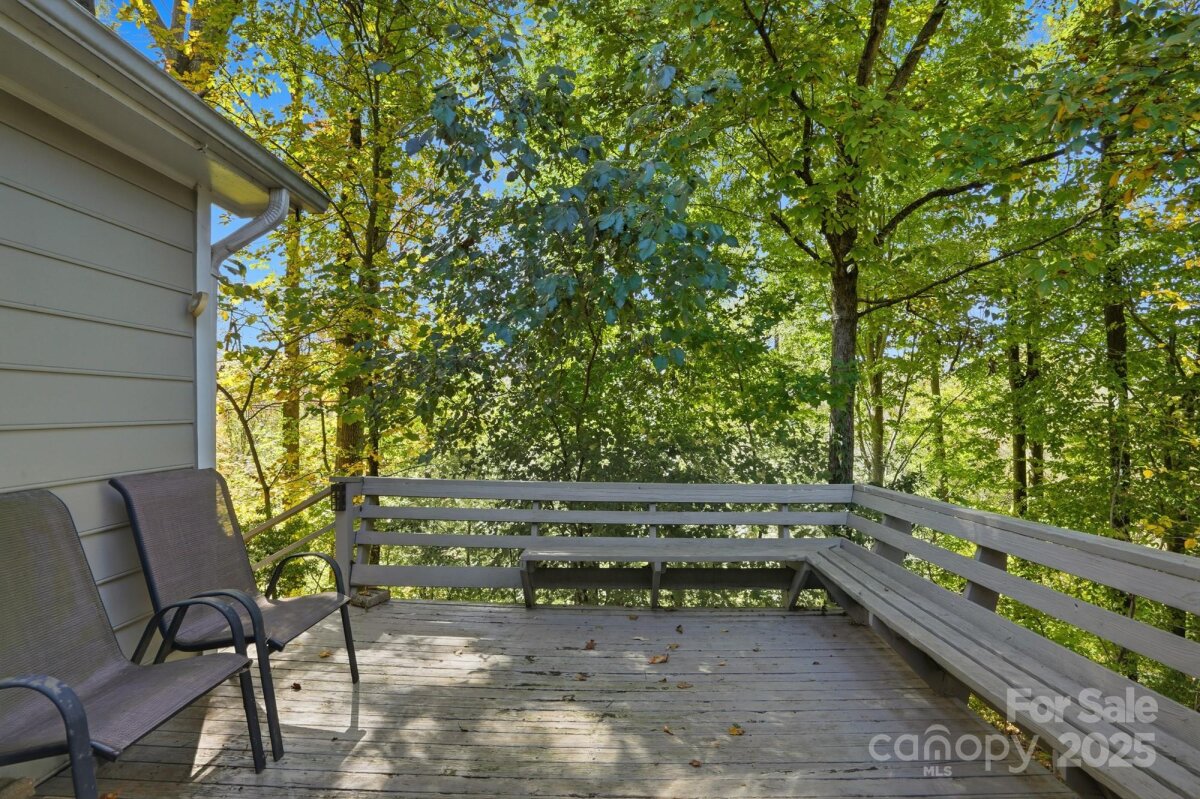 Welcome to this 3 bedroom, 2 bathroom ranch with endless potential and NO HOA! Located in the desirable Lakewood neighborhood, this home offers single-level living with a functional floor plan and spacious rooms. Living room has cathedral ceilings with exposed beam and cozy fireplace. Primary bedroom has its own full bath with a garden window, both rooms freshly painted! Deck off the dining area perfect for year-long entertaining. Quiet street and located at the end of the cul-de-sac. Private backyard surrounded by nature. Walking distance to Stuart Cramer High School, River Link Greenway and Goat Island Park, equipped with dog park, disc golf, & playgrounds! MUST SEE!