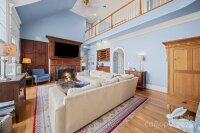 Elegant country estate offering 4 bedrooms, 3.5 baths on 1.65 acres, surrounded by a larger parcel with up to 11 additional acres available for purchase from the adjoining property owner—an exceptional opportunity for privacy and expansion. The spacious main-level primary suite features a private fireplace, oversized bath, and expansive walk-in closet. Rich architectural details continue with a custom library with built-in cabinetry and fireplace, and a formal dining room with fireplace, creating refined yet inviting living spaces. The kitchen is well appointed with a gas cooktop, wall oven, microwave, breakfast area, walk-in pantry, additional prep sink, and ample storage, opening to a dramatic two-story living room with fireplace and wet bar. Upstairs offers three additional bedrooms, including one with a private en-suite bath, plus a large bonus room with bar area, ideal for entertaining or recreation. The home provides abundant storage throughout. Outdoor amenities include a fire pit, pool house, and a former pool area that has been filled in, along with a detached two-car garage and detached carport. A new roof installed in 2021 adds peace of mind. A rare blend of timeless elegance, generous living space, and acreage potential in a private country setting.