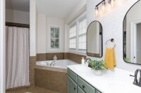 Discover the charm of Baxter Village with this inviting 3-bedroom, 2.5-bath home featuring a versatile bonus room and a bright, open layout perfect for everyday living and entertaining. The entire main level boasts freshly refinished hardwood floors, including the cozy living room with gas logs and the stylish kitchen with quartz countertops, stainless steel appliances, breakfast bar, and pantry. Upstairs, the spacious primary suite offers a relaxing retreat with dual sinks, an oversized garden tub, and a tiled separate shower. Updated bathrooms throughout add a modern touch. Step outside to a large fenced backyard with patio and firepit—ideal for weekend fun or evening get-togethers. Enjoy welcoming curb appeal with a front porch and a two-car garage. With a 4-year-old HVAC system, newer water heater, and unbeatable access to Baxter’s shops, dining, and the interstate, this home blends comfort, convenience, and community living.