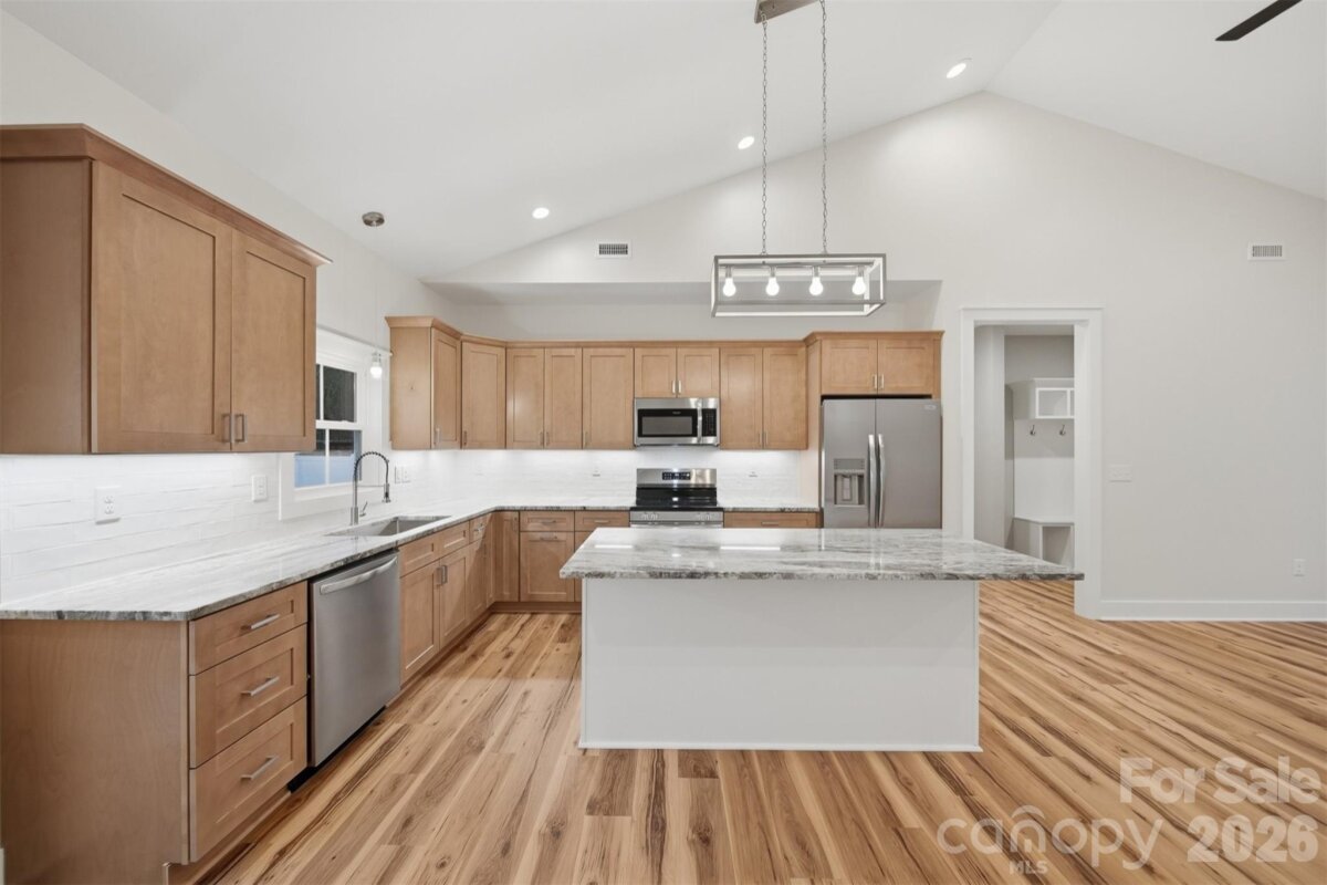Crafted to impress and built to perform, this exceptional 2026 new construction delivers the level of finish, flow, and craftsmanship today’s buyers are actively searching for. Spanning approximately 1550 square feet, the home was thoughtfully designed to feel bright, open, and immediately comfortable from the moment you walk through the door. The main living area makes a strong first impression with soaring vaulted ceilings that enhance natural light and create an expansive, welcoming atmosphere. In the primary suite, an elegant tray ceiling adds depth and architectural interest, giving the space a refined, custom built feel that stands apart from typical new construction. The kitchen is both striking and functional. Custom cabinetry is beautifully paired with upgraded granite countertops and a ceramic tile backsplash, delivering a timeless finish that balances durability with elevated style. Stainless steel appliances are included, while luxury vinyl plank flooring flows seamlessly throughout the home, providing a cohesive look designed for everyday living. The primary bathroom continues the high end feel with a fully tiled walk in shower complete with a built in bench, offering a clean, spa inspired retreat you will appreciate daily. Outside, the home commands attention with attractive stone veneer accents and vertical board and batten style vinyl siding that create strong curb appeal. Positioned on a level .34 acre open lot, the property provides excellent usable outdoor space for relaxing, entertaining, or simply enjoying the openness that buyers continue to value. This is the kind of new construction that stands out the moment you see it. Clean lines, thoughtful upgrades, and quality craftsmanship throughout, ready to welcome its very first owner.