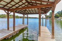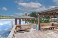 This 1964 lake house has been completely transformed and now looks like 2025 new construction. Every surface has been updated, and you will not be disappointed. Gutted to the studs with new plumbing and electrical throughout, this home features a fabulous new kitchen with modern appliances, a living room with fireplace, and an amazing 675 square foot covered deck with a fireplace and million-dollar lake views. The main level offers two bedrooms and one full bath, along with a half bath. The walkout basement includes a family room with working fireplace, sink, and refrigerator, plus two additional rooms that can serve as a bunk room and flex space, along with a full bath. The septic system was installed in 2015 and is rated for two bedrooms, but the home provides plenty of space to spread out with family and guests. Additional updates include an electric water heater (2025), furnace and central air (2015), roof (2015), and two thermostats for upstairs and downstairs. The dock has new electrical and a fan, and the garage—with a new door—offers lake views and works well for storage or a workshop, but is not suitable for vehicles or boats. Exterior updates include a new seawall, new driveway and parking areas, fresh landscaping, and new steps leading to the dock. Mountain Creek Park is located within one mile of the property.