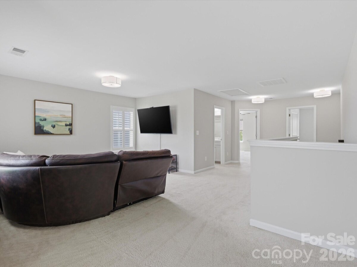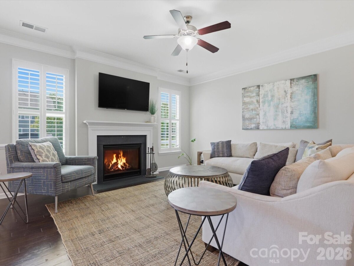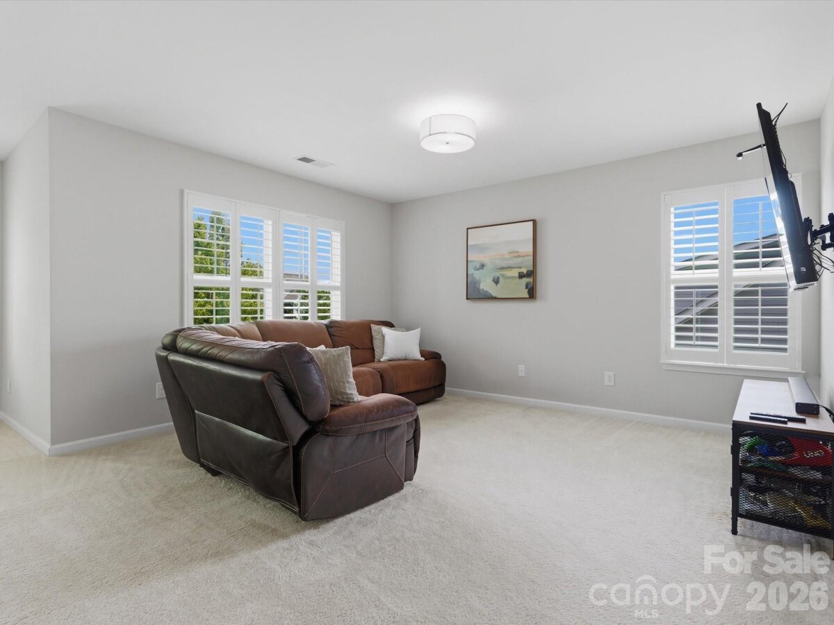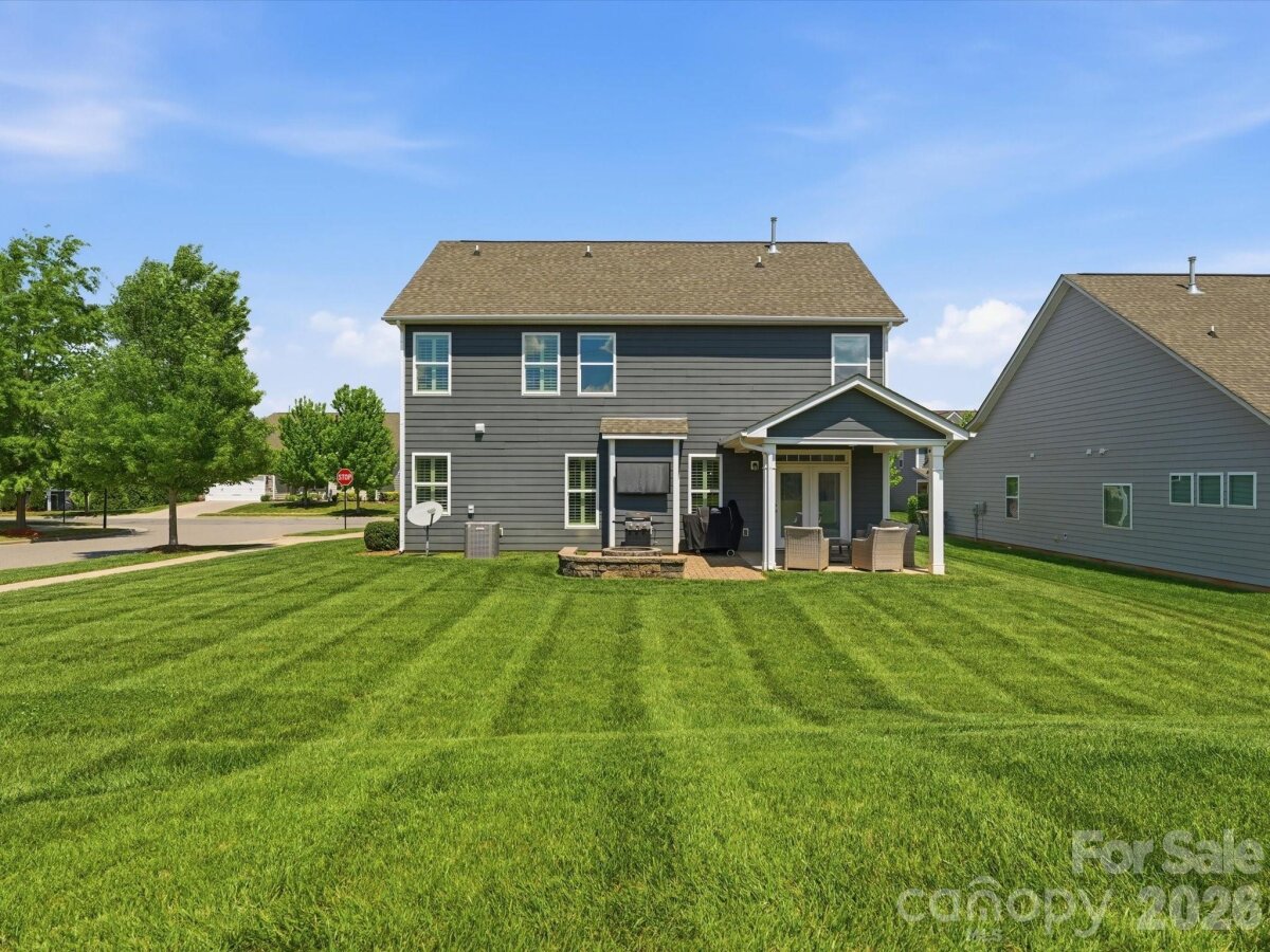 Beautiful home with eye-catching curb appeal and a great open floor plan! Welcoming foyer leads to a home office with French doors. Spacious kitchen with breakfast bar and dining area opens to a large great room with gas log fireplace—perfect for entertaining. Hard-to-find first floor guest suite with full bath adds flexibility. Upstairs features 3 bedrooms, 2 baths, and a huge bonus/loft area. Upgrades include-engineered hardwoods throughout the main, updated lighting throughout, upgraded cabinets, gas stove & plantation shutters. Enjoy the outdoors in a flat backyard with covered patio, extended paver patio, and built-in fire pit with sitting wall and outdoor TV setup. Located in an amenity-filled community with clubhouse, pool, tennis courts, fitness center, trails, and playground. Convenient to I-85, shopping, and dining.