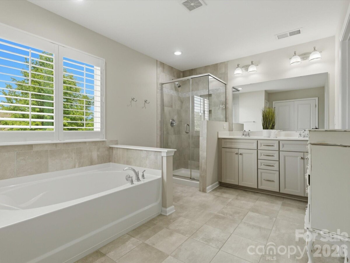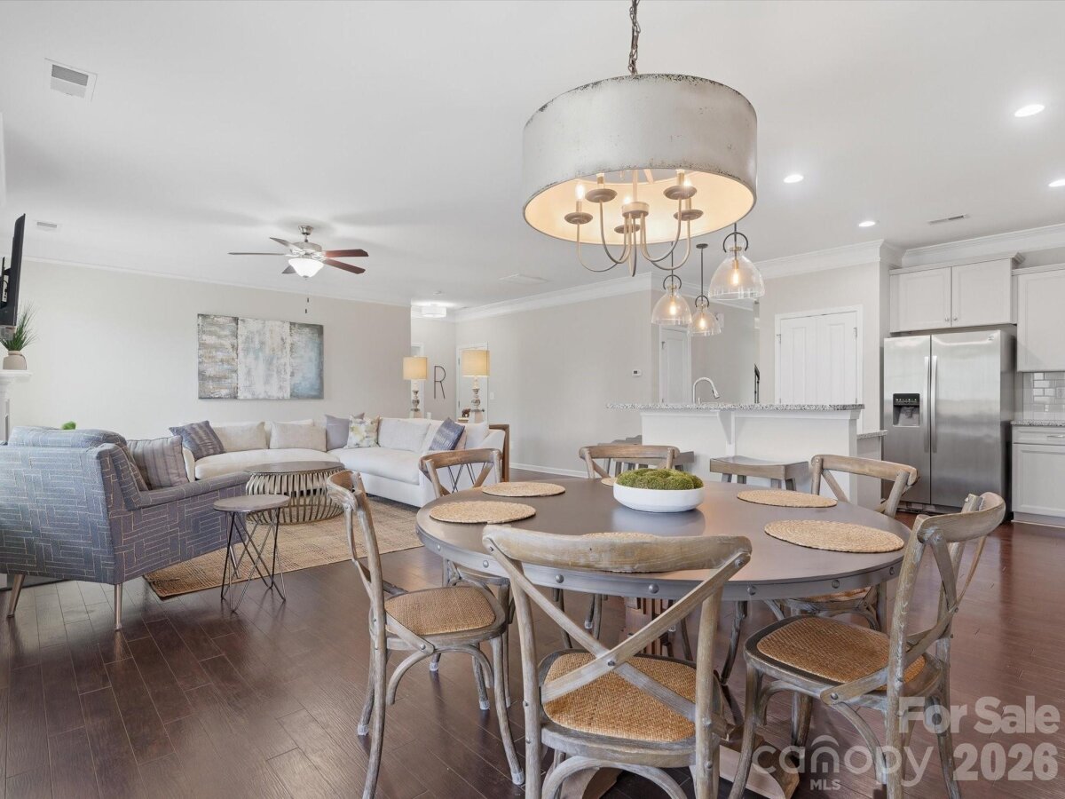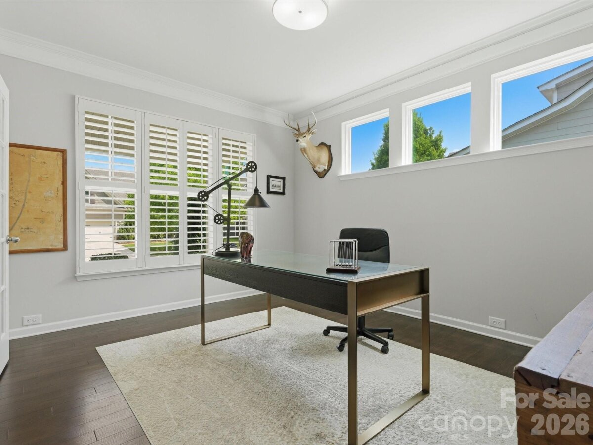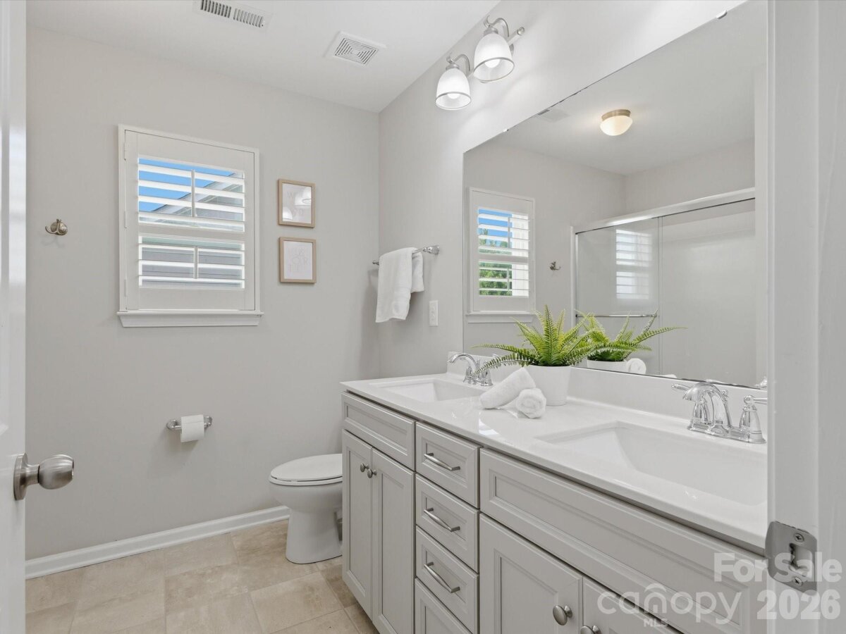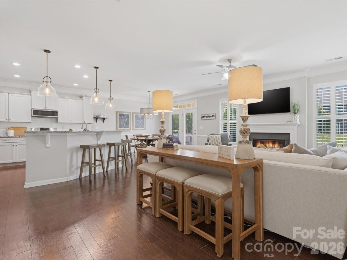 Beautiful home with eye-catching curb appeal and a great open floor plan! Welcoming foyer leads to a home office with French doors. Spacious kitchen with breakfast bar and dining area opens to a large great room with gas log fireplace—perfect for entertaining. Hard-to-find first floor guest suite with full bath adds flexibility. Upstairs features 3 bedrooms, 2 baths, and a huge bonus/loft area. Upgrades include-engineered hardwoods throughout the main, updated lighting throughout, upgraded cabinets, gas stove & plantation shutters. Enjoy the outdoors in a flat backyard with covered patio, extended paver patio, and built-in fire pit with sitting wall and outdoor TV setup. Located in an amenity-filled community with clubhouse, pool, tennis courts, fitness center, trails, and playground. Convenient to I-85, shopping, and dining.