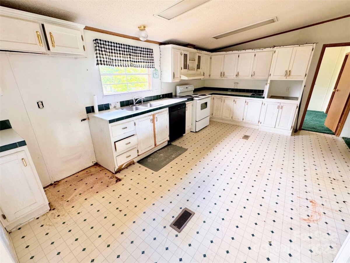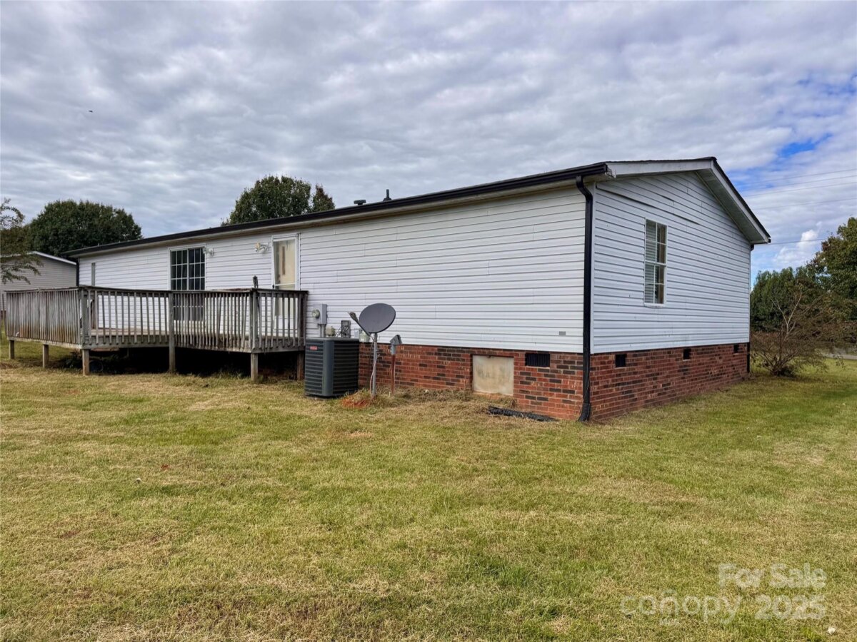 This neighborhood has no HOA. Large manufactured home (1,620 sq ft) with 3 bedrooms, 2 full bathrooms, and brick underpinning. Back deck and expansive yard fabulous for gardening and gatherings. Large shed comes with the sale! Key Updates: New roof (2020), well pump & tank (2022), HVAC (2023). Inside: Kitchen cabinets/counters are functional, needing cosmetic TLC. Note: Sliding door needs adjustment—please don't open. Ideal for peace and space. Plenty of parking. Priced to sell AS-IS. Lockbox in place.