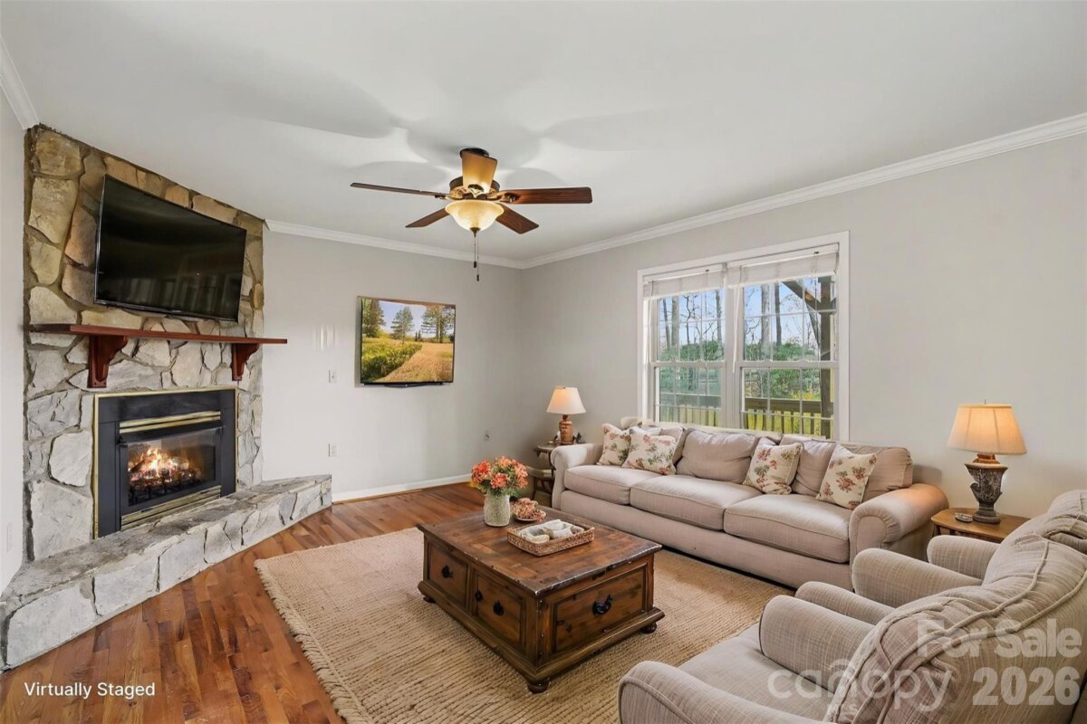 Welcome to your own private slice of the countryside—where charm, comfort, and nature come together beautifully. This custom-built 1.5-story brick home offers 3BR, 2.5BA on nearly 4 acres with a peaceful, private setting just minutes from town. Recent updates include fresh paint (2026), hot water heater (2024), porch railings/posts (2025), deck railings (2025) with decking replaced in 2019, and a backyard fence (2022). Main level features hardwood floors, spacious living room with rock fireplace, dining room, and kitchen with breakfast nook. Primary suite on main with walk-in closet, soaking tub, and separate shower. Upstairs offers 2 bedrooms, full bath, and walk-in attic storage. Outside you can enjoy your own trails, fruit trees (pear, peach), grapevines, blueberry bushes, full-length front porch, fire pit, treehouse, storage building, basement workshop, and double garage.
