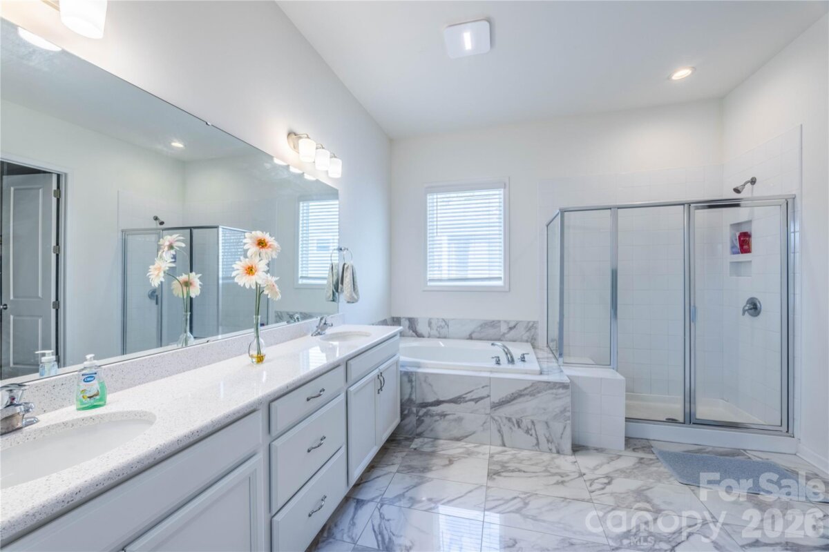 Located in a quiet Indian Land cul-de-sac, this single-story home offers quick access to Ballantyne, shopping, restaurants, and health care facilities. It features an open layout with a formal dining room, great room with gas log fireplace, and a kitchen with a large island, farmhouse sink, wall oven, microwave, and gas cooktop. Luxury vinyl plank flooring extends through the kitchen, dining, and breakfast areas. A guest suite has a private bathroom; two additional bedrooms share a full bath. The primary bedroom includes a garden tub, tiled shower, and walk-in closet. The neighborhood has a community pool. Low Lancaster County taxes.