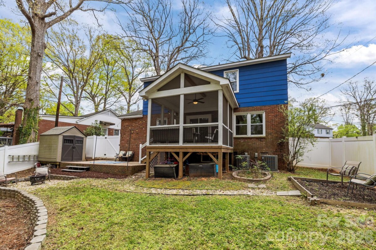 Shannon Park spacious and inviting 4-bedroom, 2.5-bath home. The bright, open layout features a cozy den with fireplace, formal dining room, and a versatile family room—perfect for everyday living and entertaining. The beautifully updated kitchen showcases stunning quartzite countertops, ample workspace, a pantry for added storage, and a refrigerator that conveys. Enjoy the convenience of a drop zone and dedicated utility room, along with a main-level powder room for guests. Upstairs, you’ll find all four generously sized bedrooms along with two full bathrooms, providing a private and functional retreat for family and guests. Step outside to a fully fenced backyard complete with a screened porch, extended concrete patio, and storage shed—ideal for relaxing or hosting gatherings. The yard backs to a peaceful wooded area, with Briar Creek and so much privacy. Major updates include a new roof (2024), HVAC approximately 6 years old, newer windows, updated main-level flooring, and modern lighting throughout—making this home truly move-in ready. Active Shannon Park community with neighborhood park and pool.(pool membership optional) Less than 10 minutes to Eastway Recreation Center, Plaza Midwood and NODA!