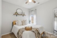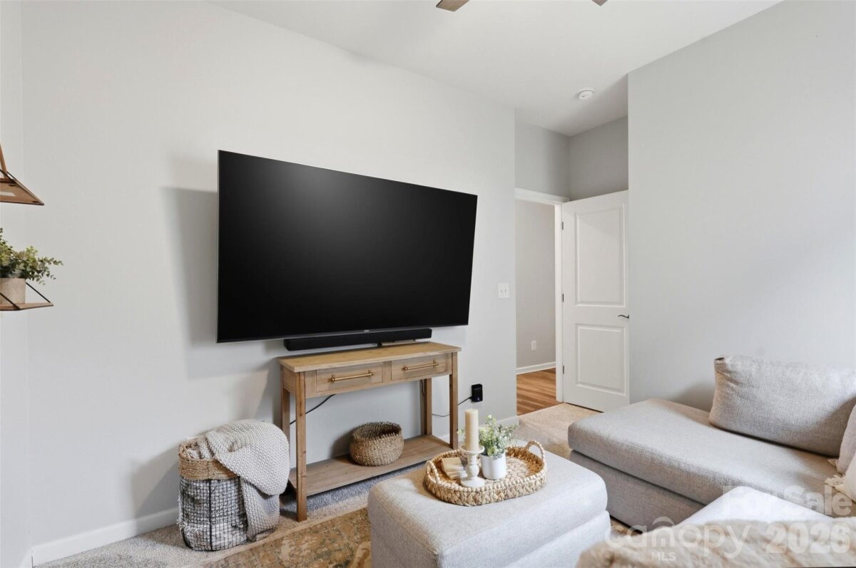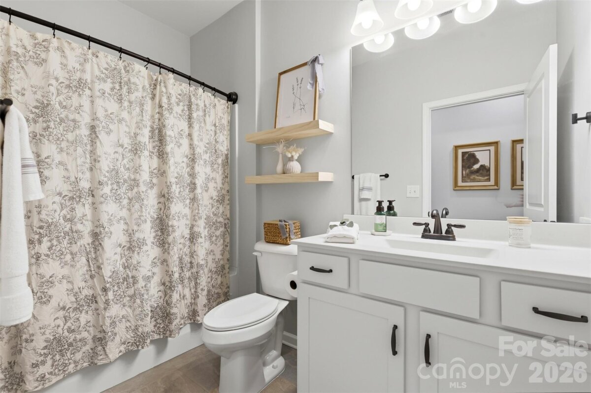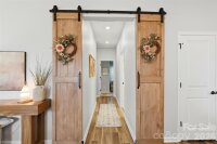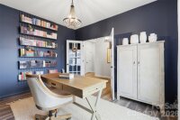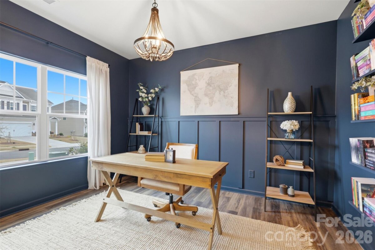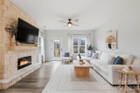 Beautifully updated 3-bedroom, 2-bath ranch in highly sought-after River Park community, thoughtfully elevated far beyond the builder’s basic finishes. Upon entry, you’re welcomed into a completely open floor plan highlighting a chef’s kitchen featuring white shaker cabinetry, quartz countertops, tile backsplash, stainless steel appliances, and an oversized island perfect for gathering and entertaining. The dining area flows seamlessly into the living room, where a designer electric fireplace with custom wood mantle & Eldorado stone surround creates a warm focal point, adding so much character. Behind french doors, the dedicated home office offers the perfect work-from-home setup and has been beautifully upgraded with custom trim work, a built-in bookshelf, and a rich, color-drenched navy finish that gives the room a moody feel. The primary suite features a forest green trim accent wall and custom walk-in closet with built-ins. A sliding barn door leads to the ensuite bath, complete with a walk-in tile shower with bench, double-sink vanity, and elevated design finishes. A split floor plan offers additional privacy, with the secondary bedrooms and full bath tucked away behind dual antique sliding doors off the main living space—adding both function and a unique architectural detail. Spacious laundry room features floating shelves for added storage. Enjoy North Carolina’s beautiful weather year-round in the thoughtfully designed backyard, featuring a concrete pad and extended paver patio with retaining wall and privacy walls, creating the perfect setting for relaxing. Rather than taking on the time and expense of upgrades yourself, enjoy the advantage of a home that is already beautifully updated, on-trend, and completely move-in ready. River Park offers fantastic family-friendly amenities including a community clubhouse, pool, playground, and walking trails. Just minutes from the U.S. National Whitewater Center, where you’ll find whitewater rafting, kayaking, zip lines, ropes courses, mountain biking, hiking, rock climbing, and more. Plus, you're less than 20 minutes from Charlotte Douglas International Airport for easy travel. Designed to stand out; this home delivers the style and personality buyers are searching for!
