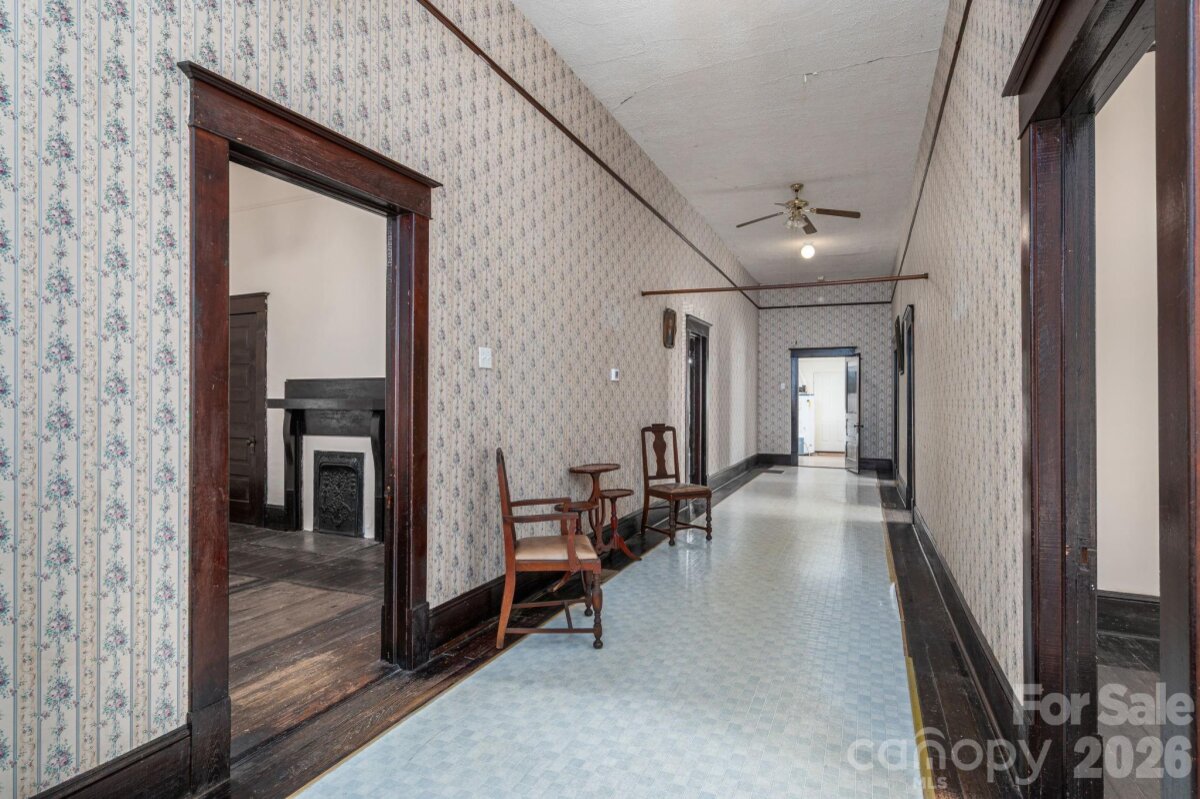 This gorgeous 1924 home has been lovingly owned by the same family for more than 100 years and is filled with timeless character and charm. From the expansive hallway with picture-frame crown molding to the original hardwood floors, this home offers a glimpse into classic craftsmanship. Enjoy relaxing on the rocking-chair front porch and the convenience of an in-town location. The property also features a detached carport with additional shed space, a deck off the back, and a fenced-in backyard. With generous living space throughout, this home offers endless potential for those looking to restore, update, or simply appreciate its historic beauty. There are 4 fireplaces that are covered. The security camera does not convey. Back door is broken and will be replaced.
