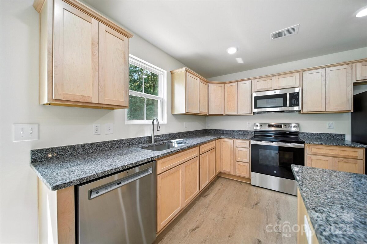 Quality New Construction! Step into this thoughtfully designed 3-bedroom, 2-bath home offering 1,400+ sq ft on a level lot. Enjoy a covered front porch and a large back deck, perfect for morning coffee or weekend gatherings. Inside, the open concept layout highlights LVP flooring and recessed lighting throughout. The kitchen is equipped with custom cabinets, granite counters, and stainless steel appliances. An oversized laundry room adds everyday convenience, while the primary suite includes a walk-in closet and a beautifully finished bath. With quality craftsmanship, modern finishes, and functional design, this home is move-in ready and built for both comfort and convenience.