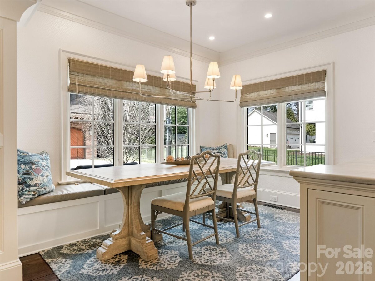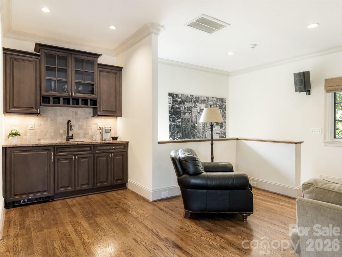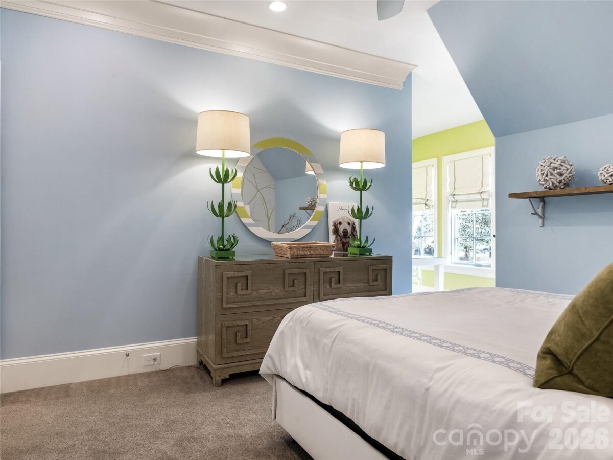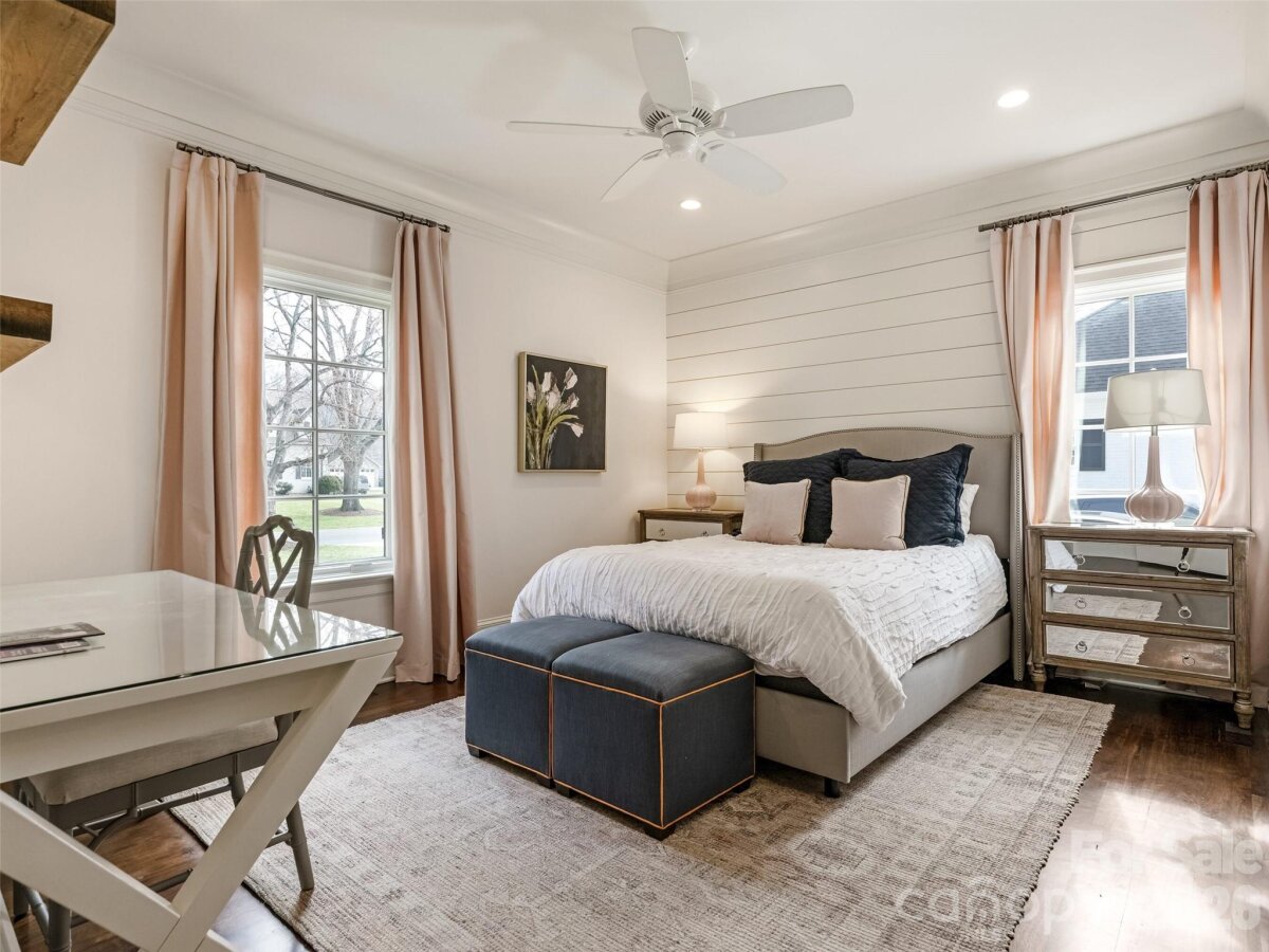 Right sized living with effortless indoor/outdoor flow! Well considered spaces throughout. Striking herringbone patterned walnut floors sets the tone. High ceilings create an immediate sense of light and volume. The great room centers the house--producing an inviting space opening to the kitchen and dining area. Main level primary suite with tray ceiling, heated marble floors, towel warmer, soaking tub and large walk in closet. Large Covered outdoor porch with masonry fireplace and blue stone flooring. Detached oversized garage with living space above-- provides remarkable flexibility--private guest suite, office, or studio! All of the details were considered here-- whole house generator, remote control gate, foam insulation, sealed crawl space, Baldwin hardware, easy walk- in storage, irrigation--plus more!!