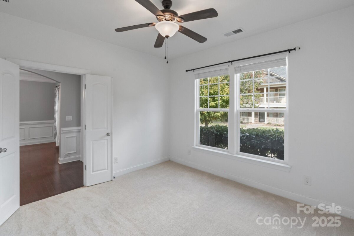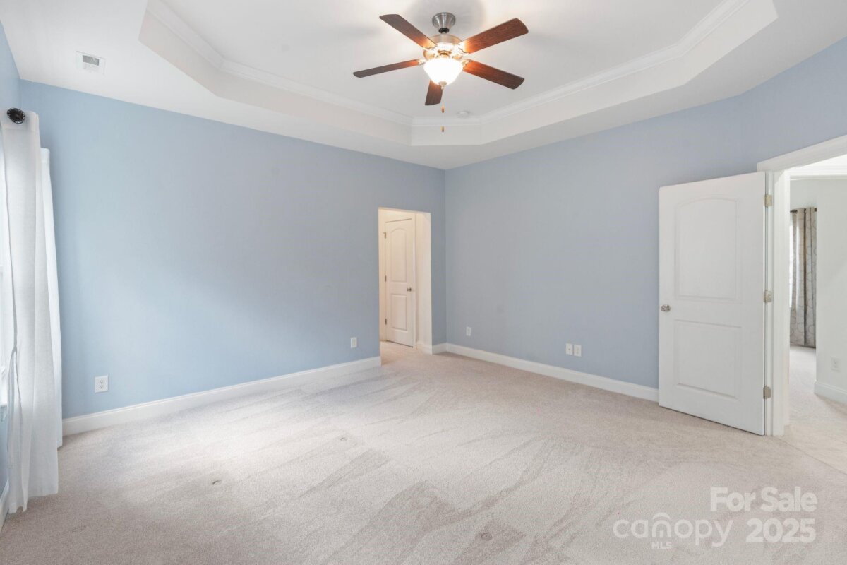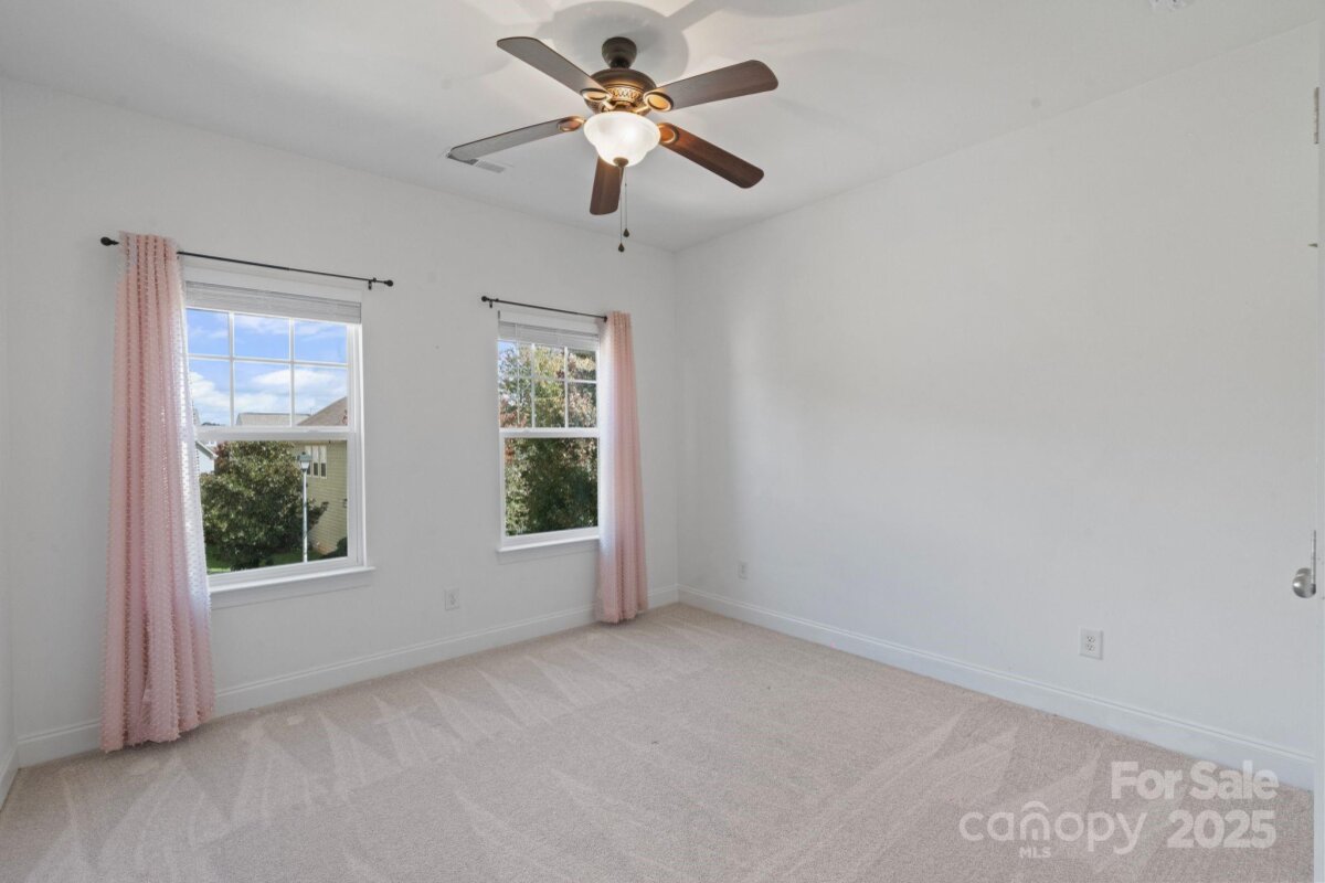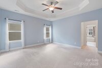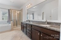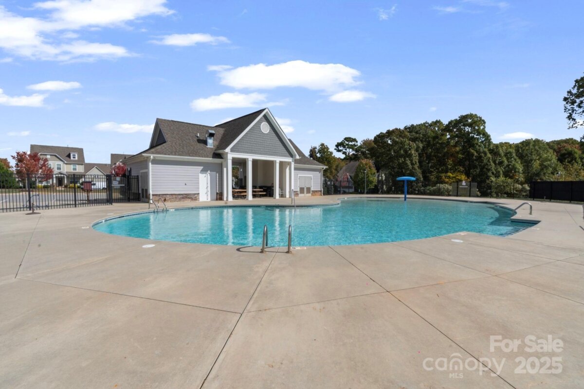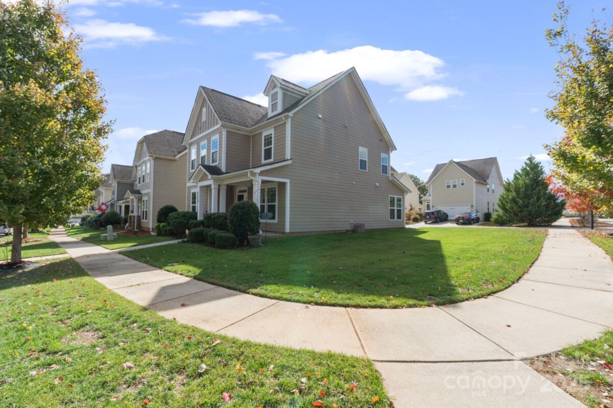 Positioned on a desirable corner lot with a spacious, flat side yard, this well-maintained home is move-in ready and priced to sell. Recent updates include freshly painted interior walls and kitchen cabinets, new carpet (2024), and new window treatments with cordless blinds (2024). The main floor features an open-concept design with a bright kitchen showcasing granite countertops and stainless steel appliances that open to the great room—ideal for gatherings and everyday living. A full bedroom and bath on main level provide flexibility for guests or a home office. Upstairs includes three additional bedrooms, a full bath, a large media/recreational room, and a generous primary suite with a tray ceiling, a very spacious walk-in closet, and walk-in attic access. The ensuite bath offers a dual granite vanity, garden tub, and separate shower. Additional highlights include an irrigation system, a two-car garage, and a prime location within walking distance to the community pool! Conveniently close to I-485, Highway 74, shopping, and dining. Make it yours today!