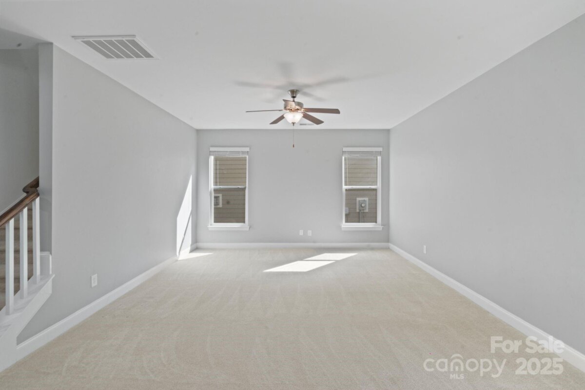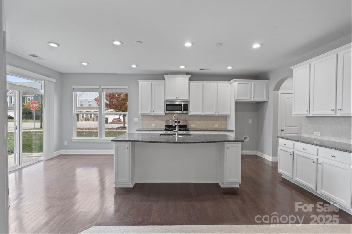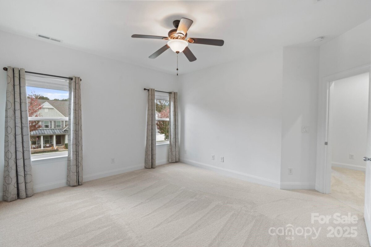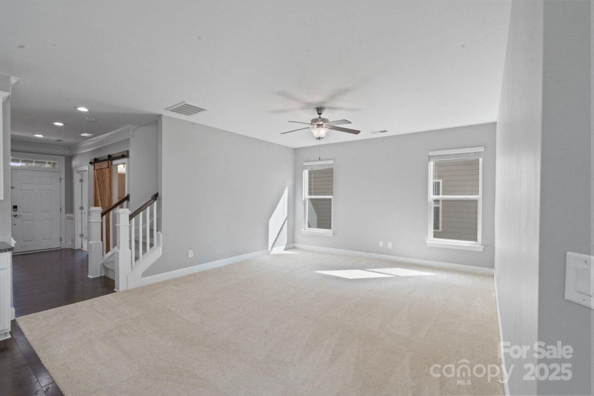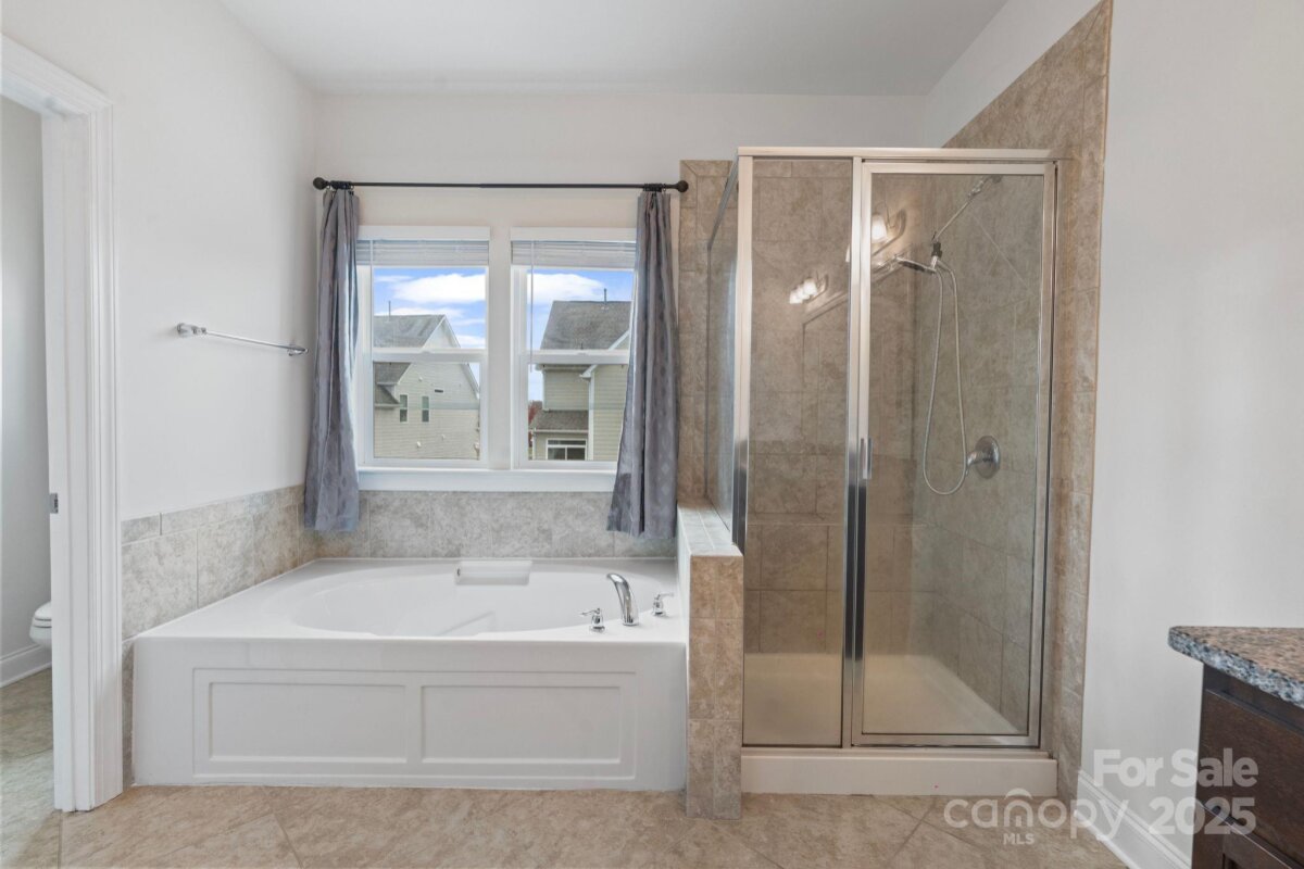 Positioned on a desirable corner lot with a spacious, flat side yard, this well-maintained home is move-in ready and priced to sell. Recent updates include freshly painted interior walls and kitchen cabinets, new carpet (2024), and new window treatments with cordless blinds (2024). The main floor features an open-concept design with a bright kitchen showcasing granite countertops and stainless steel appliances that open to the great room—ideal for gatherings and everyday living. A full bedroom and bath on main level provide flexibility for guests or a home office. Upstairs includes three additional bedrooms, a full bath, a large media/recreational room, and a generous primary suite with a tray ceiling, a very spacious walk-in closet, and walk-in attic access. The ensuite bath offers a dual granite vanity, garden tub, and separate shower. Additional highlights include an irrigation system, a two-car garage, and a prime location within walking distance to the community pool! Conveniently close to I-485, Highway 74, shopping, and dining. Make it yours today!