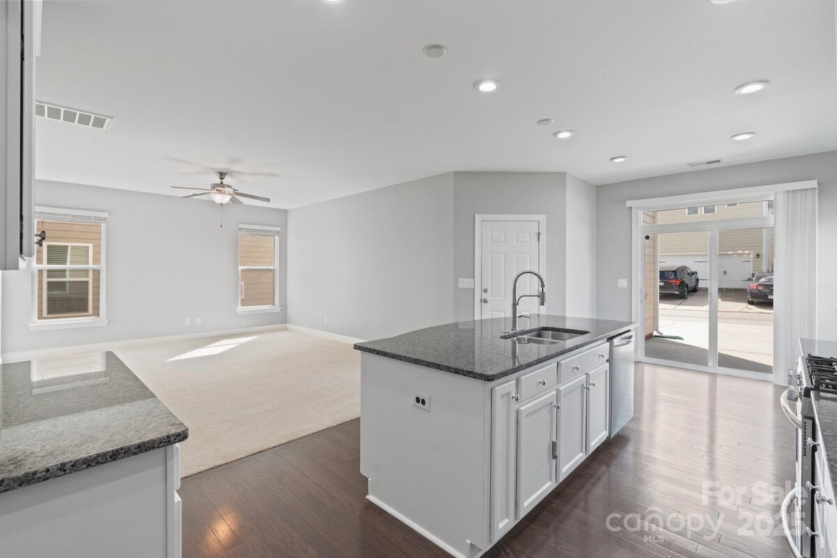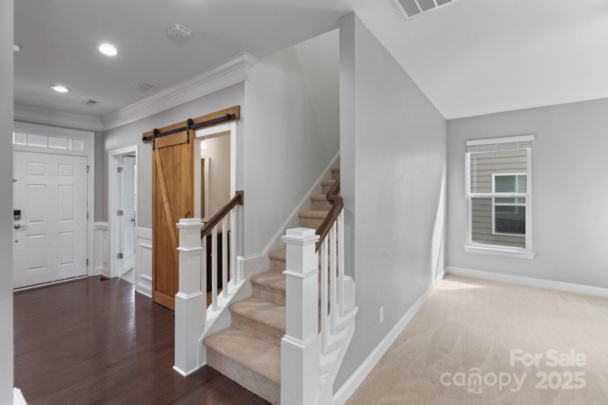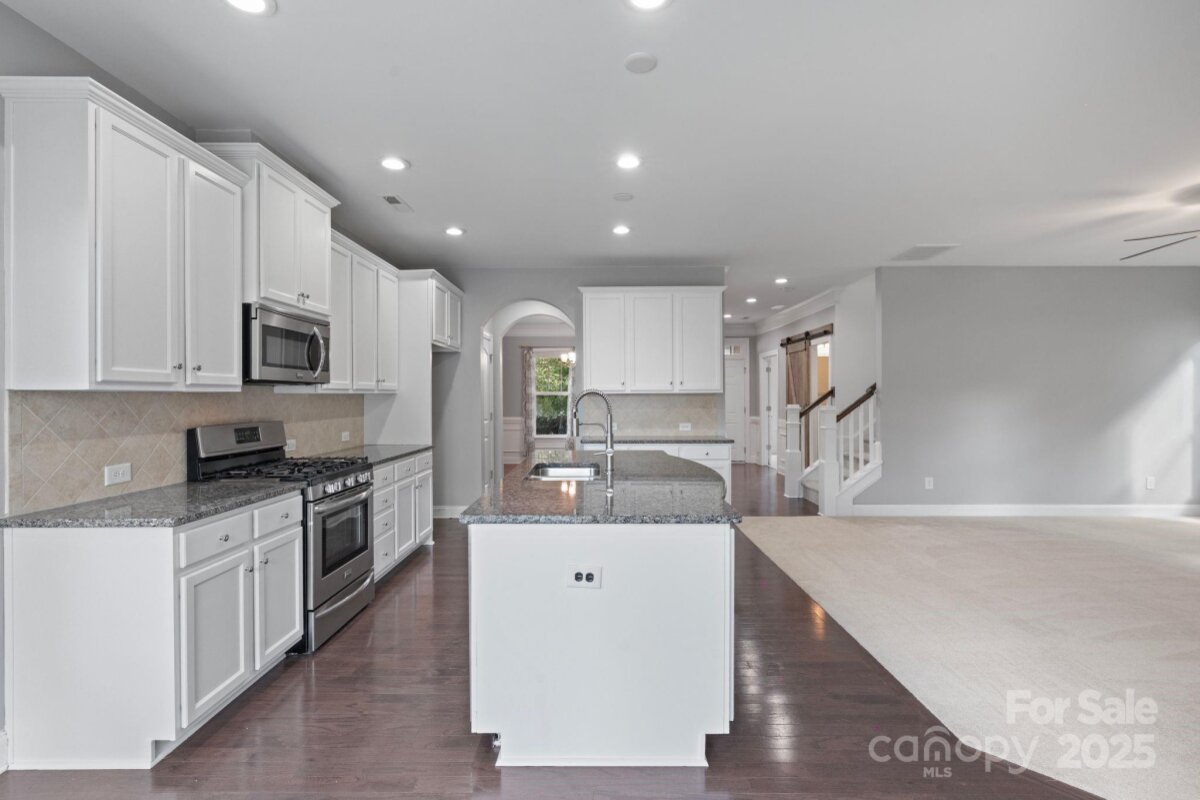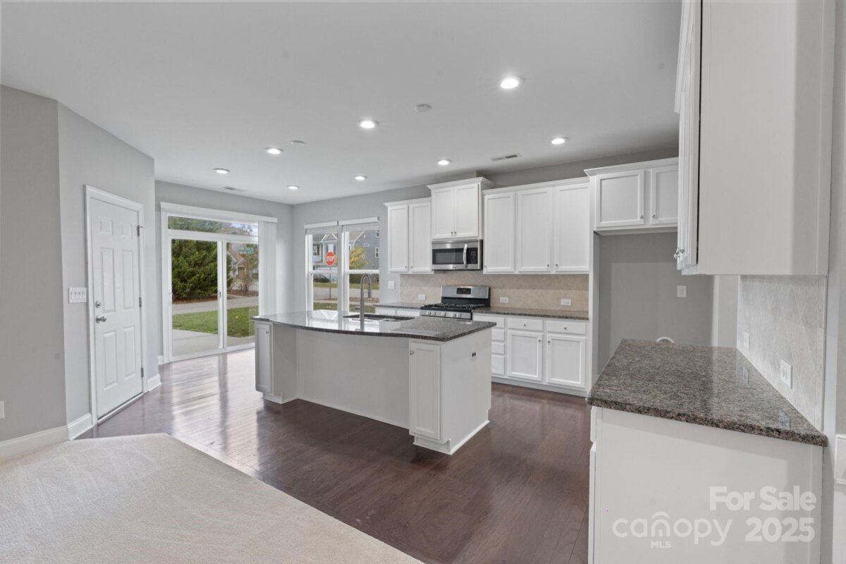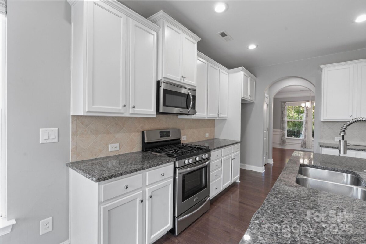 Positioned on a desirable corner lot with a spacious, flat side yard, this well-maintained home is move-in ready and priced to sell. Recent updates include freshly painted interior walls and kitchen cabinets, new carpet (2024), and new window treatments with cordless blinds (2024). The main floor features an open-concept design with a bright kitchen showcasing granite countertops and stainless steel appliances that open to the great room—ideal for gatherings and everyday living. A full bedroom and bath on main level provide flexibility for guests or a home office. Upstairs includes three additional bedrooms, a full bath, a large media/recreational room, and a generous primary suite with a tray ceiling, a very spacious walk-in closet, and walk-in attic access. The ensuite bath offers a dual granite vanity, garden tub, and separate shower. Additional highlights include an irrigation system, a two-car garage, and a prime location within walking distance to the community pool! Conveniently close to I-485, Highway 74, shopping, and dining. Make it yours today!