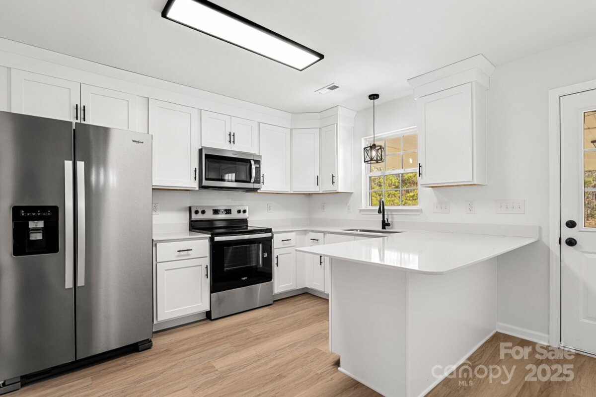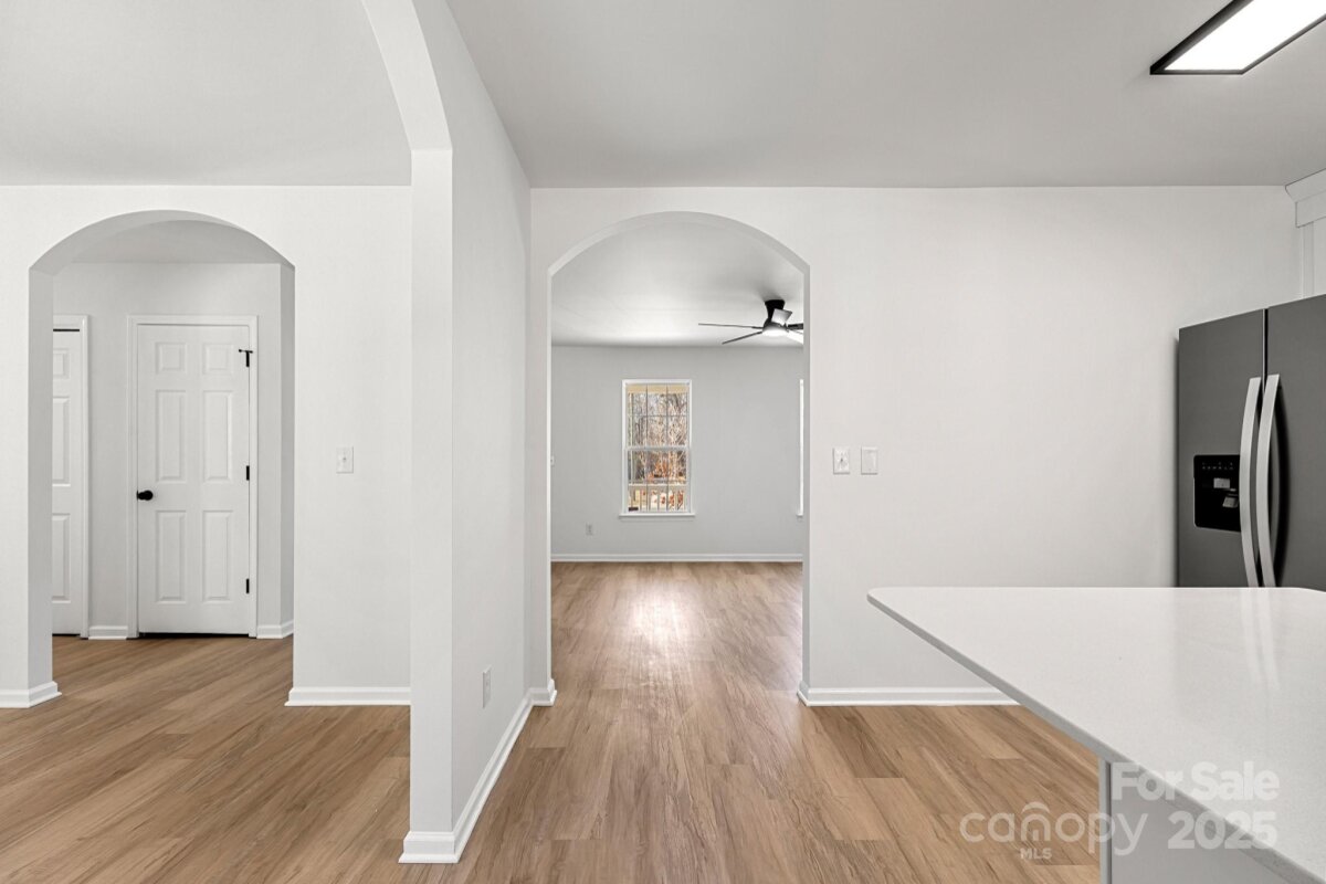 CUTE 3 bed, 2 bath home newly refreshed and ready for you! Walk into the home onto NEW LVP flooring throughout! So much to love in this home: great room with nice fireplace, dining area with plenty of room, and WOW the kitchen! The kitchen is stunning w/white shaker cabinets, quartz countertops, small bar with seating for 2, and Stainless Steele appliances! Beautiful arched doorways throughout main living areas! Primary Suite is SO spacious featuring modern ceiling fan and closet. The Primary bathroom is AWESOME w/walk in shower AND tub/shower combo along with a single quartz vanity! Both guest bedrooms are ample in size and share the additional full bathroom w/single quartz vanity and tub/shower combo. Outside hosts a large deck, 2 car carport, and nice open back yard! So many features to love- come see it today!