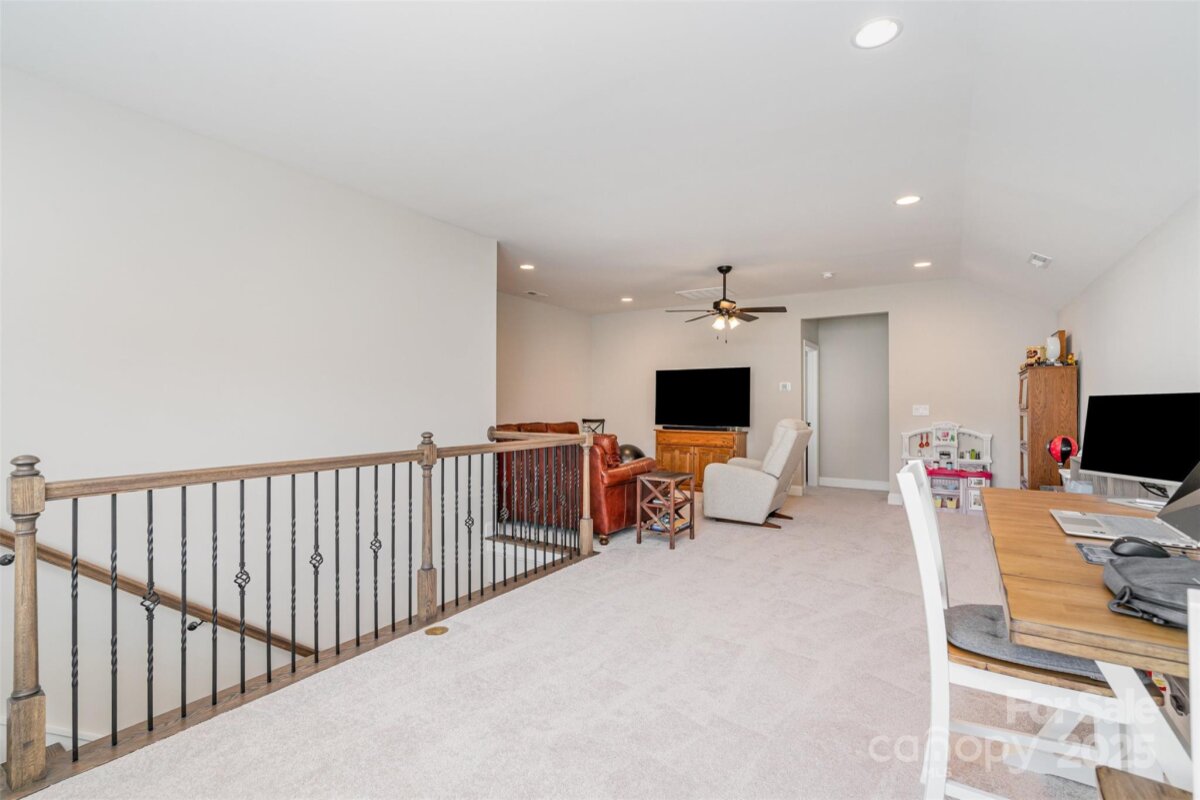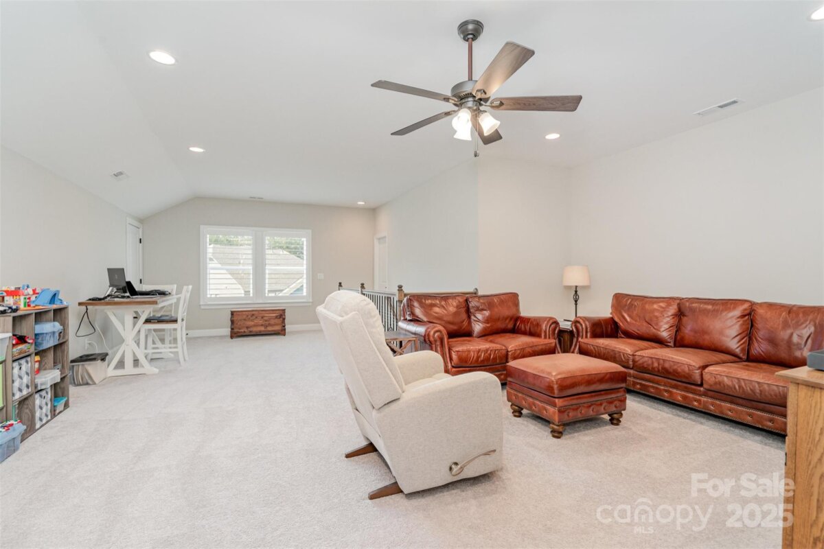 Welcome to 335 Brambling Court in Pinnacle at Wesley Chapel, a vibrant 55+ community where modern living meets comfort and convenience. Built in 2021 and set on a quiet cul-de-sac, this beautifully upgraded home offers 3 bedrooms, 3.5 baths, a large office, and exceptional design tailored for everyday ease and entertaining. The main level features engineered hardwoods throughout, an open layout with a spacious primary suite, complete with a roll-in shower, Closets by Design custom shelving and cabinetry, and framed vanity mirrors for a touch of elegance. A generous office provides flexible space for work or hobbies, while a built-in buffet with abundant storage adds both functionality and a custom feel to the dining area. Plantation shutters and room-darkening Duet shades are installed throughout, providing both style and function. In the kitchen, upgrades include a Bosch dishwasher, super-quiet disposal, a high-capacity hood, and stylish lighting and ceiling fans that enhance the home’s livability. Upstairs offers a true second living space, perfect for guests. It includes a large family room, bedroom, full bath with frameless shower enclosure, and two walkout storage rooms for added convenience. The outdoor spaces have been thoughtfully designed for enjoyment and low-maintenance living. A screened back porch with an epoxy-coated floor opens onto a large paver patio, perfect for entertaining. Professional landscaping features rock gardens, landscape beds on all sides, and cypress trees and crape myrtles in the backyard. Additional highlights include an irrigation system, epoxy-coated garage floor, overhead garage shelving, keyless smart entry lock, and custom shelving in the pantry and under-stair closet. Every detail has been carefully considered to maximize style, comfort, and functionality. Residents of Pinnacle at Wesley Chapel enjoy a clubhouse with gathering space, an exercise room with equipment, and a bocce court, adding to the appeal of this move-in ready home. 335 Brambling Court represents a rare opportunity to own an upgraded, thoughtfully designed home in one of the area’s most desirable active-adult neighborhoods.