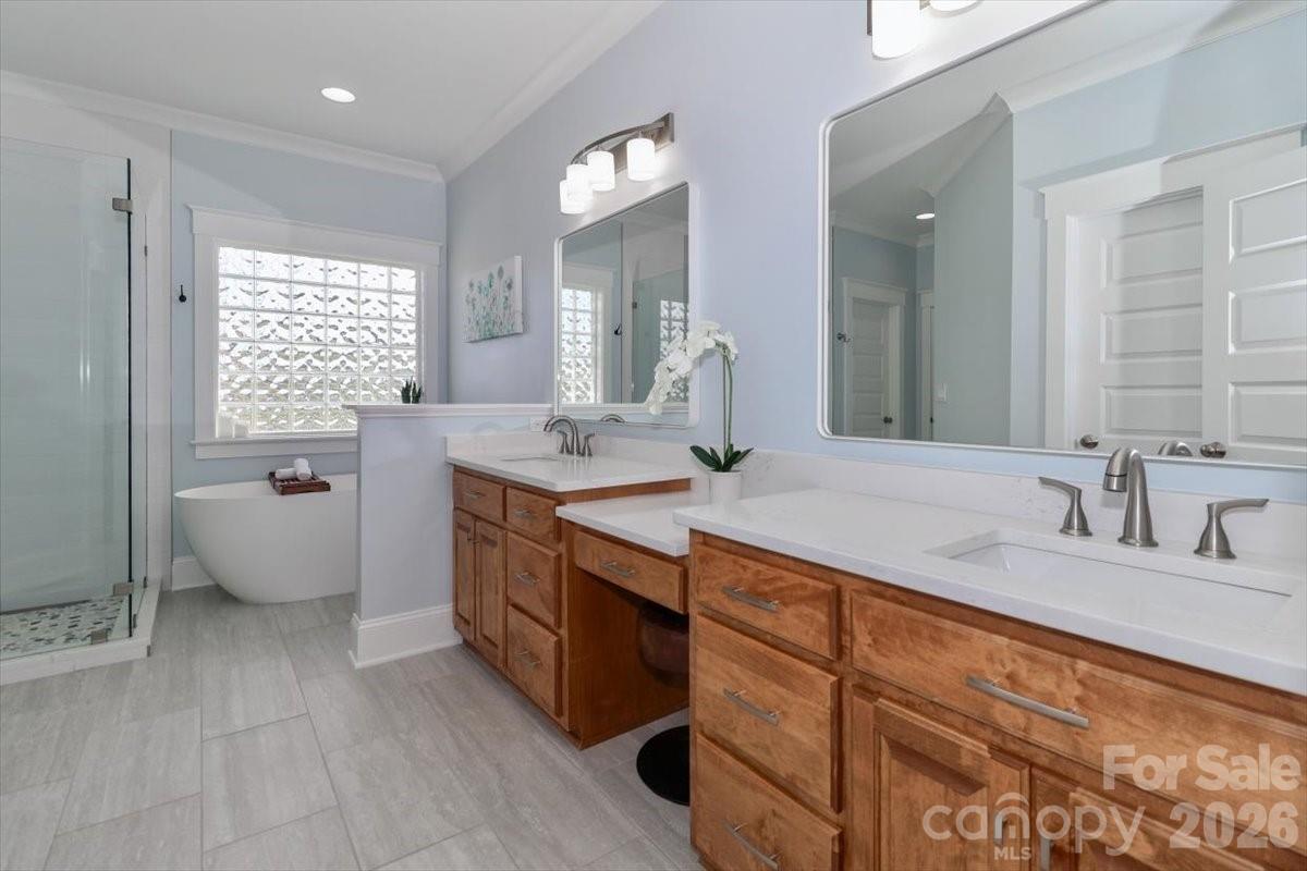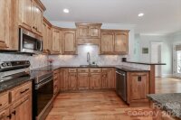 Welcome to this beautifully maintained 3-bedroom, 2.5-bath home in the highly sought-after Kellswater Bridge community of Kannapolis. Built in 2006 and meticulously cared for, this home truly shows like a model. The main-level primary suite features a stunningly updated bathroom (2024) with a modern freestanding soaking tub, separate tiled shower with frameless glass door, updated fixtures, new toilet, and stylish finishes that create a spa-like retreat. The secondary full bathroom has also been updated with a new toilet. The home offers numerous updates and improvements, including electric range (2025), counter-depth stainless steel refrigerator, dishwasher (2024), exterior paint (2025), carpet (2023), and roof boots replaced in 2025. The roof was previously replaced around 2015. HVAC has been regularly maintained by Morris Jenkins for added peace of mind. Inside, you'll find thoughtful touches throughout including custom built-ins surrounding the gas fireplace in the living room, an updated laundry room with new cabinetry and a wood folding top, and a convenient drop zone. Upstairs features a spacious family/bonus room and walk-in attic storage. Outdoor living is just as inviting with a screened porch overlooking the side-yard, enhanced by an extended black aluminum fence (2025) and mature landscaping added for additional privacy. A utility easement behind the home provides extra privacy and offers easy access to neighborhood walking trails. Located in the popular Kellswater Bridge community, a 370-acre neighborhood near I-85 in western Cabarrus County, residents enjoy proximity to the North Carolina Research Campus, Village Park, Atrium Health Ballpark (home of the Kannapolis Cannon Ballers), and the future Kellswater Commons retail center. This move-in ready home offers style, comfort, and an unbeatable location.