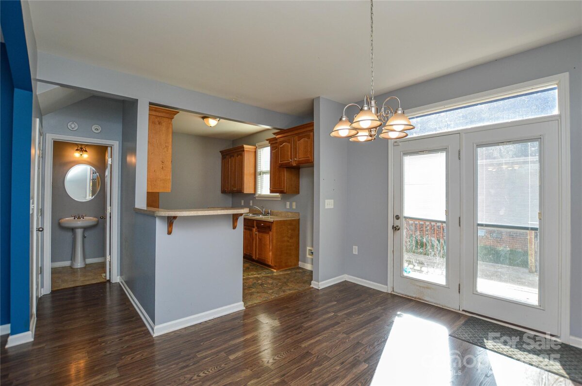 Welcome Home. This corner lot property offers five generously sized bedrooms and 2 and half bathrooms. The open floor plan featured on the downstairs level is ideal for hosting events or social gatherings. Primary bedroom with spacious bathroom and walk in closet finishes off the main level. Upstairs you will find 4 generous size bedrooms and a full bathroom. Through the French doors in the dining room, you step out onto the deck to enjoy morning coffee or evening relaxation. This property is conventionally located close to downtown Statesville which offers many amenities and vibrant entertainment.