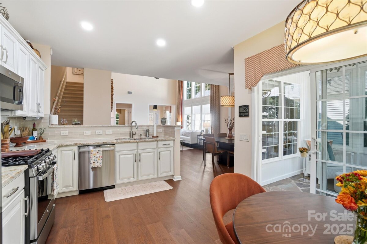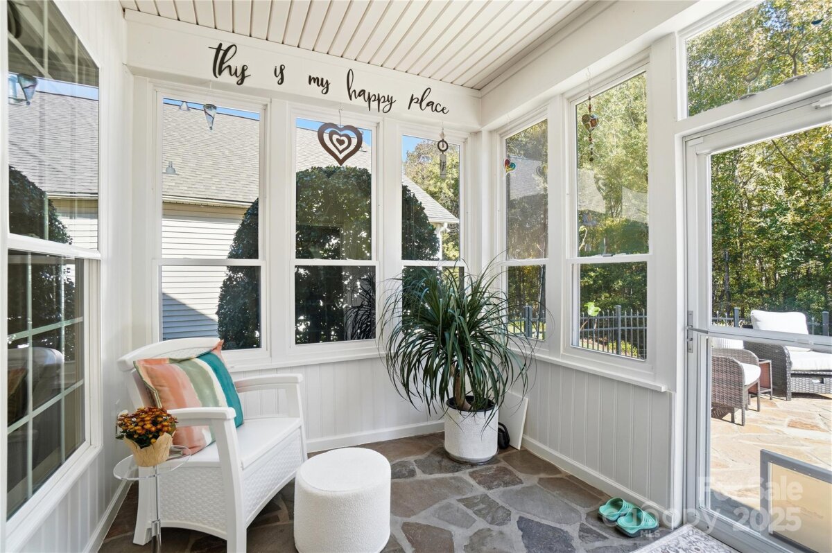 MULTIPLE OFFERS the seller has decided they intend to entertain offers through noon on Friday, November 21. A December closing with a lease back to January 30 is preferable. Immaculate, Updated 3-Bedroom Matthews Home — Truly One of a Kind Step inside this exceptionally maintained and beautifully updated Matthews home, and you’ll immediately see why it stands apart from the rest. Every detail has been thoughtfully upgraded — from the high-end kitchen and baths to the serene outdoor spaces — creating a home that’s as functional as it is luxurious. The chef’s kitchen features stunning granite countertops, premium soft-close cabinetry, and stainless steel appliances, all designed to impress. The great room boasts soaring cathedral ceilings, abundant natural light, and a cozy gas fireplace — the perfect space for relaxing or entertaining. It even has Wi-fi Connected automated shades for ease of use! The primary suite is a true retreat with elegant tray ceilings and a spa-inspired bath featuring designer tile, a frameless glass shower, and upscale finishes throughout. The secondary bedroom offers its own beautifully updated en-suite bath with high-end tile and glass shower, ideal for guests or multi-generational living. Upstairs, you’ll find a third bedroom and full bath, complete with new tile and a classically styled tub surround. Enjoy year-round comfort in the insulated sunroom, perfect as a four-season retreat, or unwind on the stone patio overlooking the fenced backyard and protected wooded area beyond — a rare combination of privacy and tranquility. Even the garage is a standout, with epoxy floors, a dedicated storage room, mini-split HVAC for climate control, and an exhaust fan ideal for projects or car enthusiasts. Spend more time relaxing as the HOA INCLUDES the yard work! This home has been meticulously cared for and thoughtfully upgraded — you simply won’t find another like it in the area.