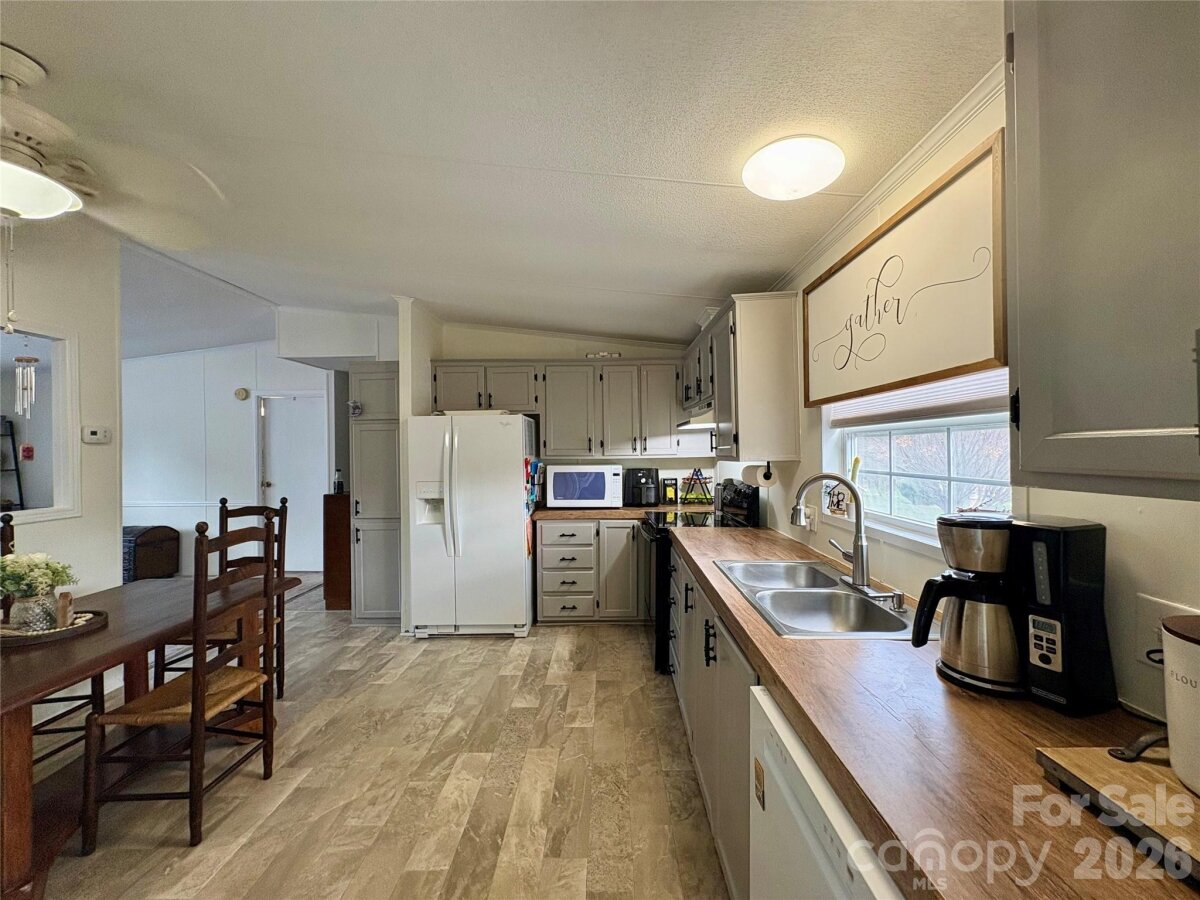 Charming Country Estate on 1.22 Acres is calling your name! If you want affordable, peaceful, and private...your search is over. Three bedrooms, 2 full baths. Primary ensuite with dual vanity and walk in closet with ample storage space. Large Great room that is open to spacious kitchen. All appliances remain! Dishwasher and dryer were new in 2025. Tons of counter top space! Split bedroom plan with cozy bedrooms and a bath opposite of the primary ensuite. Laundry room at back of home leading out to an amazing back yard. The views are serene. Great deck for relaxing. Two storage buildings! This one will not last long. Clean and taken care of. Call today!