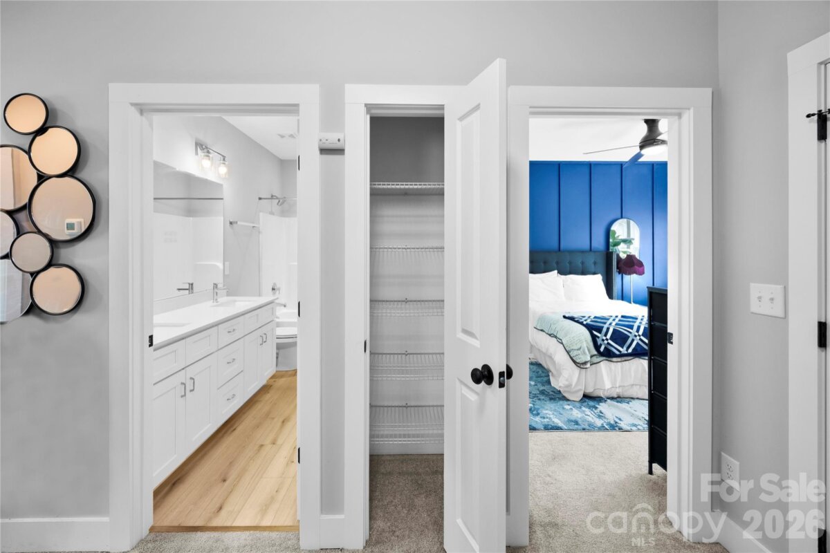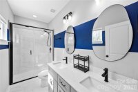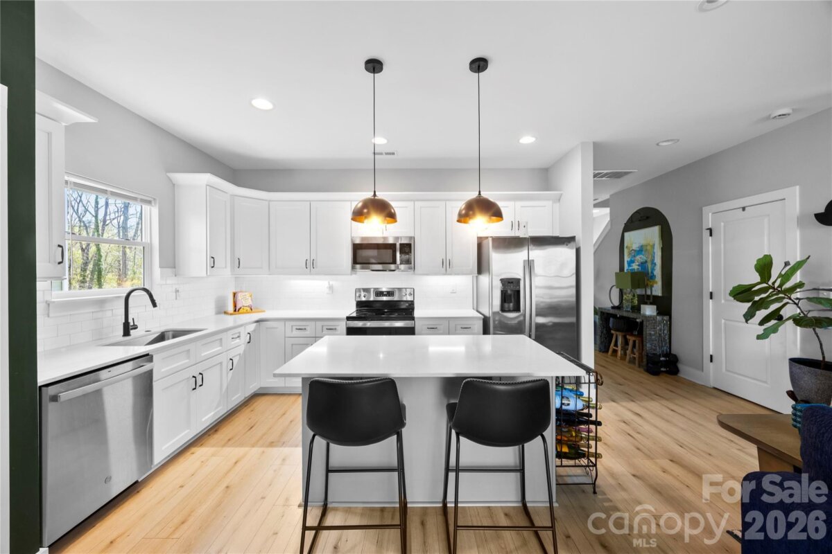 Welcome to this stunning newer constructed home tucked away on a private wooded street in one of Charlotte’s fastest-growing areas and direct access to Stewart Creek Greenway. This modern home offers the perfect combination of style, functionality and location. The open-concept layout features 9-foot ceilings, abundant natural light, and designer finishes throughout. The chef-inspired kitchen includes quartz countertops, stainless steel appliances, tile backsplash and soft-close cabinetry ideal for everyday living and entertaining. A main-level bedroom with a full bath provides flexibility for guests, a home office, or multi-generational living. Upstairs, the primary suite boasts a fully tiled walk-in shower, double vanity, and custom closet shelving for a true spa-like experience. Enjoy privacy in a small enclave of homes while being just minutes from Uptown, dining, and entertainment. With thoughtful design, upscale finishes, and greenway access, this home is perfect for families, first-time buyers, or investors seeking a property with high appeal and strong resale potential. Don’t miss the chance to own a beautifully designed home in a rapidly appreciating area- schedule your showing today!