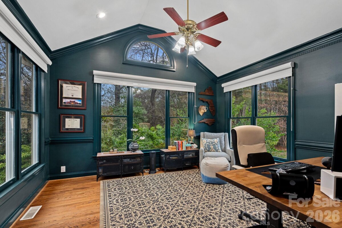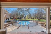 A rare offering on one of Providence Plantation’s most picturesque streets, Gray Moss Road. Positioned on a quiet cul-de-sac and set across 1.94 acres of level, manicured grounds, this distinguished full-brick estate offers over 5,000 square feet of curated living space designed for both elevated entertaining and refined everyday comfort. A circular drive creates an impressive arrival, leading to striking custom 9.5-foot-tall, 5-foot-wide steel doors handcrafted by TLG Doors, immediately setting the tone for the craftsmanship and architectural presence carried throughout the home. Inside, rich hardwood floors extend across the main level, connecting expansive living spaces with warmth and timeless elegance. The dramatic two-story family room, anchored by a stunning stone fireplace, creates architectural presence while remaining welcoming and livable. A matching custom door system opens to the covered porch, allowing for a seamless transition to the pool and backyard and creating an effortless indoor-outdoor lifestyle rarely found in this community. One of the most compelling features of this home is how it lives like a ranch, with the majority of bedrooms and bathrooms located on the main level. The primary suite serves as a true retreat, complete with its own sitting room, fireplace, and dedicated four-seasons room currently used as an office, offering both luxury and functionality. Two additional main-level bedrooms each feature their own full bath, making the layout ideal for guests, family members, or multigenerational living. With so much daily living space on one level, the home offers the comfort and convenience typically associated with ranch-style homes while maintaining the scale and presence of a grand estate. Upstairs, you will find two additional bedrooms, a separate loft area, and one bedroom that features its own connected loft space, perfect for a study zone or private lounge. A large bonus room situated over the three-car garage provides excellent separation from the main living areas and offers flexibility for a media room, recreation space, gym, or playroom. The outdoor setting is equally impressive. The nearly two-acre superior lot provides exceptional privacy and usable space, centered around the pool and expansive lawn. A dedicated fire pit area creates the perfect backdrop for evenings under the Carolina sky. Near the pool, a detached structure adds remarkable versatility. Designed with a garage-style door and currently outfitted with indoor climbing walls, and gym equipment, this flexible space can serve as a playroom, gym, studio, workshop, equipment storage, or tractor shed depending on your needs. A three-car garage completes the home’s balance of sophistication and practicality. Set in one of Charlotte’s most established and sought-after neighborhoods and served by award-winning schools — with JM Robinson Middle School beginning in the 2026–2027 school year — this property delivers scale, privacy, architectural detail, and enduring quality in a way that is increasingly rare in Providence Plantation. 3430 Gray Moss Road is more than a home — it is a legacy property designed for the way you want to live.