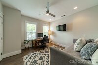 Your home search ends here. Welcome to this stunning custom home in the heart of Sedgefield, just steps from South End’s vibrant restaurants, shops, breweries, and the light rail—offering the best of Charlotte right at your doorstep. This beautifully designed 5-bedroom home features hardwood floors throughout the entire first and second levels. The gourmet quartz kitchen opens seamlessly to the family room with custom built-in shelving and a cozy gas fireplace, creating the perfect space for both everyday living and entertaining. A spacious screened porch extends your living area outdoors—ideal for hosting or relaxing when you go outside to see your resort style yard. New in 2025, the backyard has been completely transformed into a private oasis featuring a resort-style saltwater pool with waterfall and hot tub, travertine pool deck, gas fire pit, and professional landscaping with custom lighting. A separate suite includes a living area, Murphy bed, kitchen, bathroom, and laundry—perfect for guests or extended stays. Additional storage for pool equipment is also included. Enjoy a fully integrated Sonos sound system throughout the first floor, third floor, pool house, and outdoor areas—perfect for entertaining. Retreat to your oversized primary suite offers a true sanctuary, complete with a spa-like bathroom featuring dual vanities, two separate walk-in closets, and a luxury smart toilet with heated seat, bidet, and automatic features. A standout feature is the third-floor bonus space, perfect for a media room, game room, or entertaining area, along with a private 5th bedroom and full bath—ideal for guests.