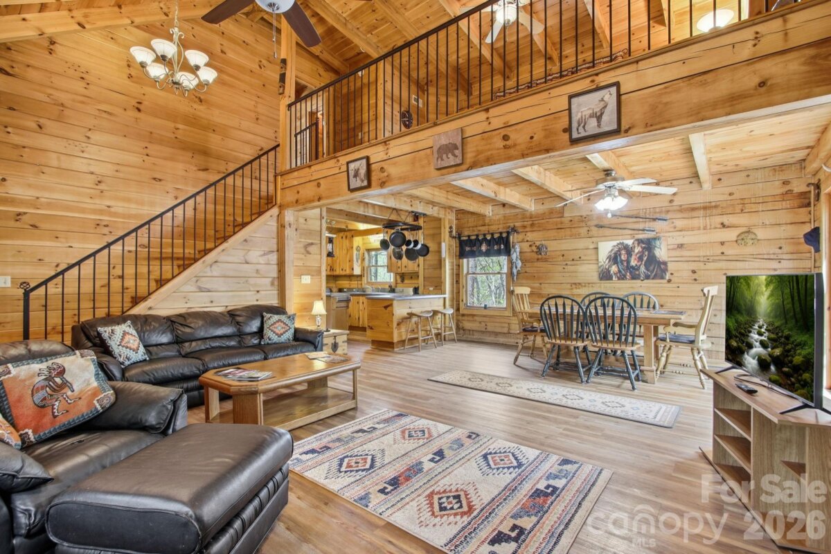 Charming 3 bedroom, 3 bath cabin situated on 10+ acres in Lenoir. This property offers a peaceful setting with a blend of modern updates and rustic appeal, ideal for a primary residence, second home, or investment opportunity. Recent improvements include new luxury vinyl plank flooring throughout the main living areas and basement, along with a new heat pump and HVAC system. The kitchen features updated appliances, including a refrigerator, stove, and microwave. The home is being sold partially furnished, offering added convenience for buyers. Enjoy the inviting outdoor spaces with a large covered front porch and an additional lower porch—perfect for relaxing and taking in the natural surroundings. Inside, a beautiful stone fireplace serves as a focal point in the living area, adding warmth and character to the home. The layout includes three full bathrooms and additional living space in the basement, providing flexibility for guests or entertaining. The property also offers ample parking space for multiple vehicles. The surrounding acreage provides privacy and plenty of room for outdoor enjoyment. A great opportunity to own a move-in ready cabin with acreage in a quiet setting.