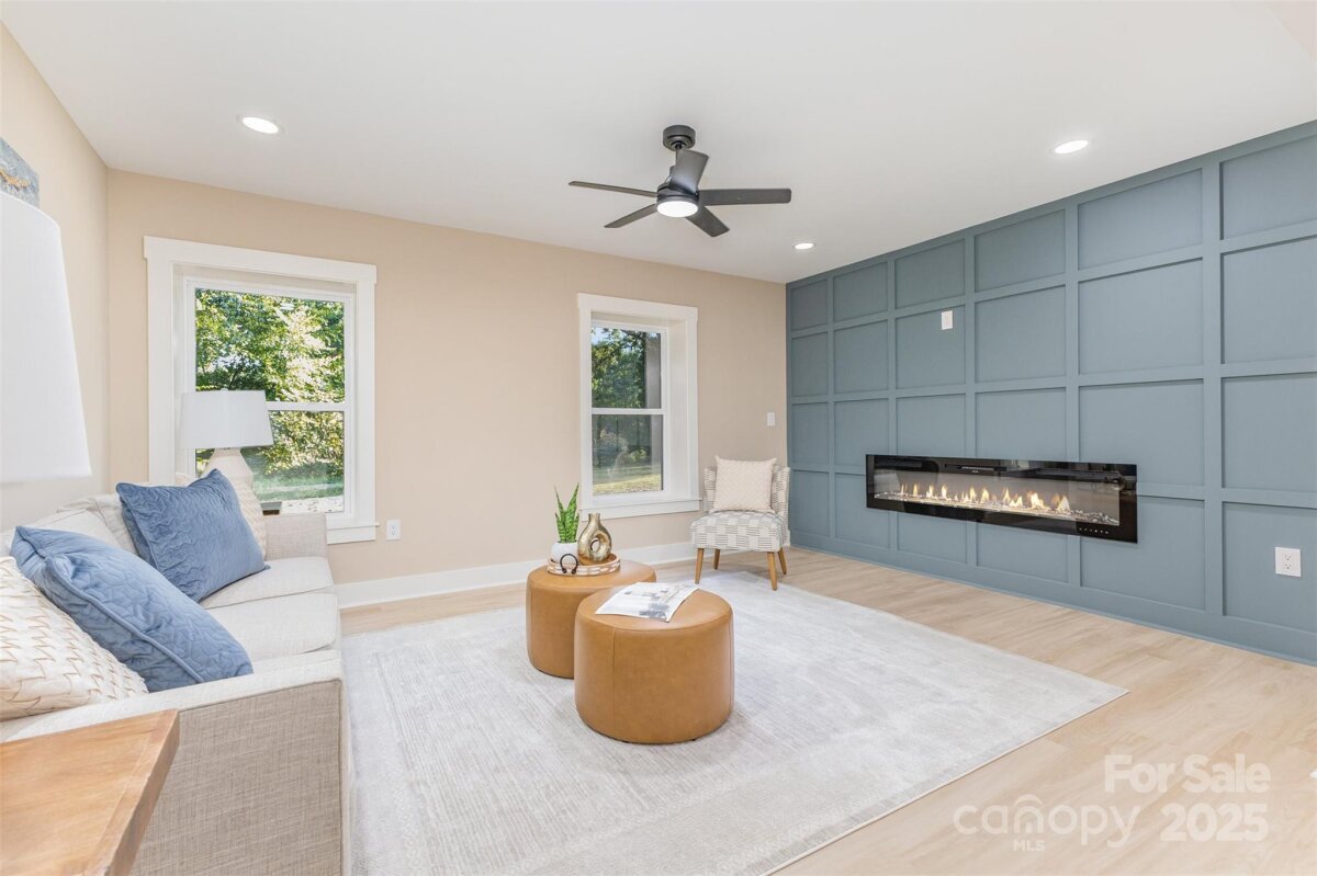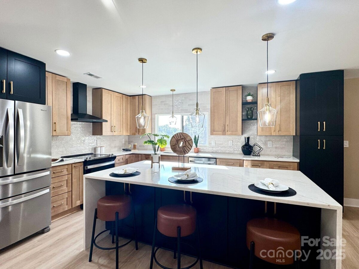 Stunning Ranch-style home with fully finished basement, completely renovated with luxury, high-end finishes and custom details designed for today’s lifestyle. Over 3,600 sqft with brand-new HVAC, plumbing, electrical, and city water/sewer. The main level features a custom kitchen with Taj Mahal countertops, stainless appliances, tall ceilings, large windows, LVP flooring, electric fireplace, spacious covered porch, and a primary suite with custom closet, tiled shower/bath, and double vanity. Two additional bedrooms with custom closets and a tiled full hall bath complete this floor. The fully finished basement adds flexibility with a second primary suite, additional bedroom, full bath, second living room with fireplace, flex/bonus space, office, 2nd pantry, laundry, two-car garage, and storage. Don’t miss the opportunity to own this one-of-a-kind, move-in ready luxury home!