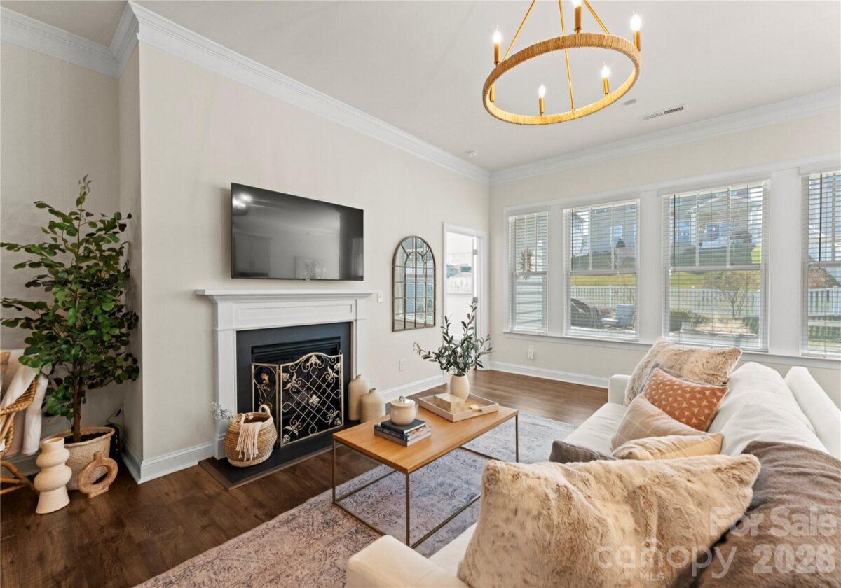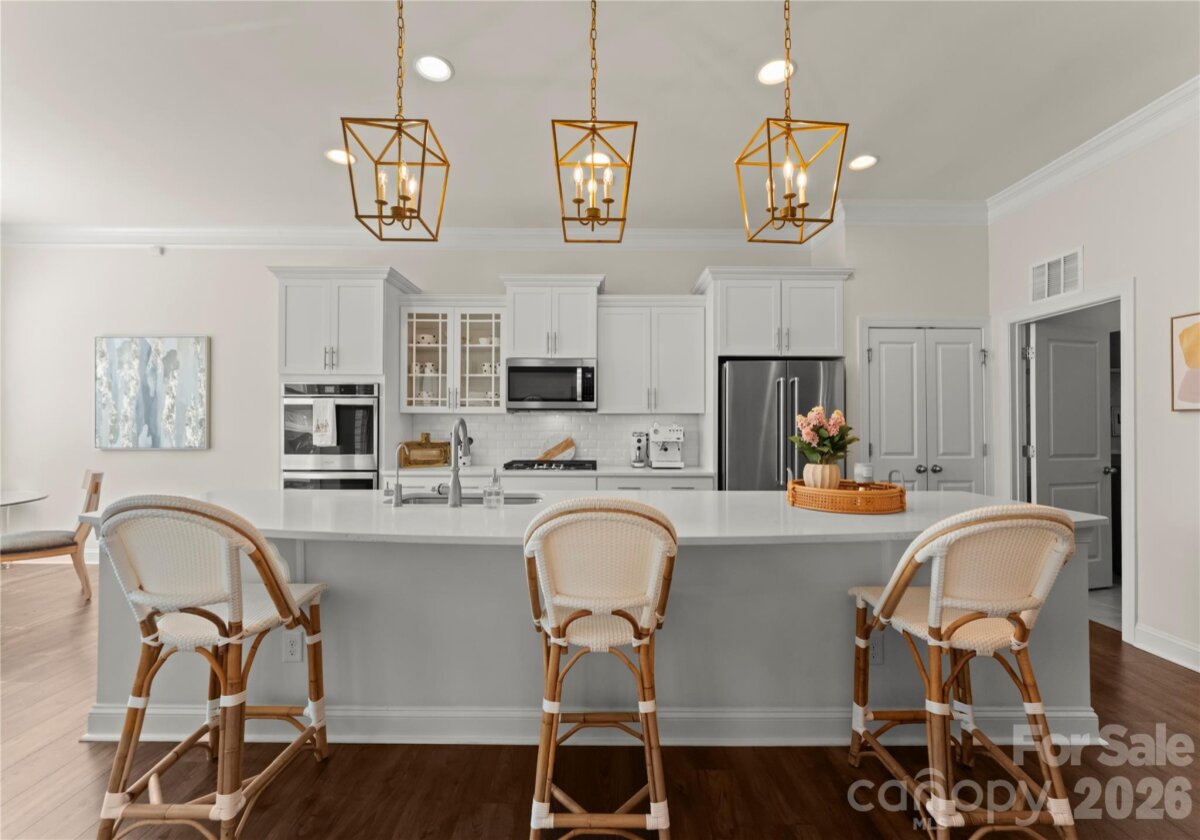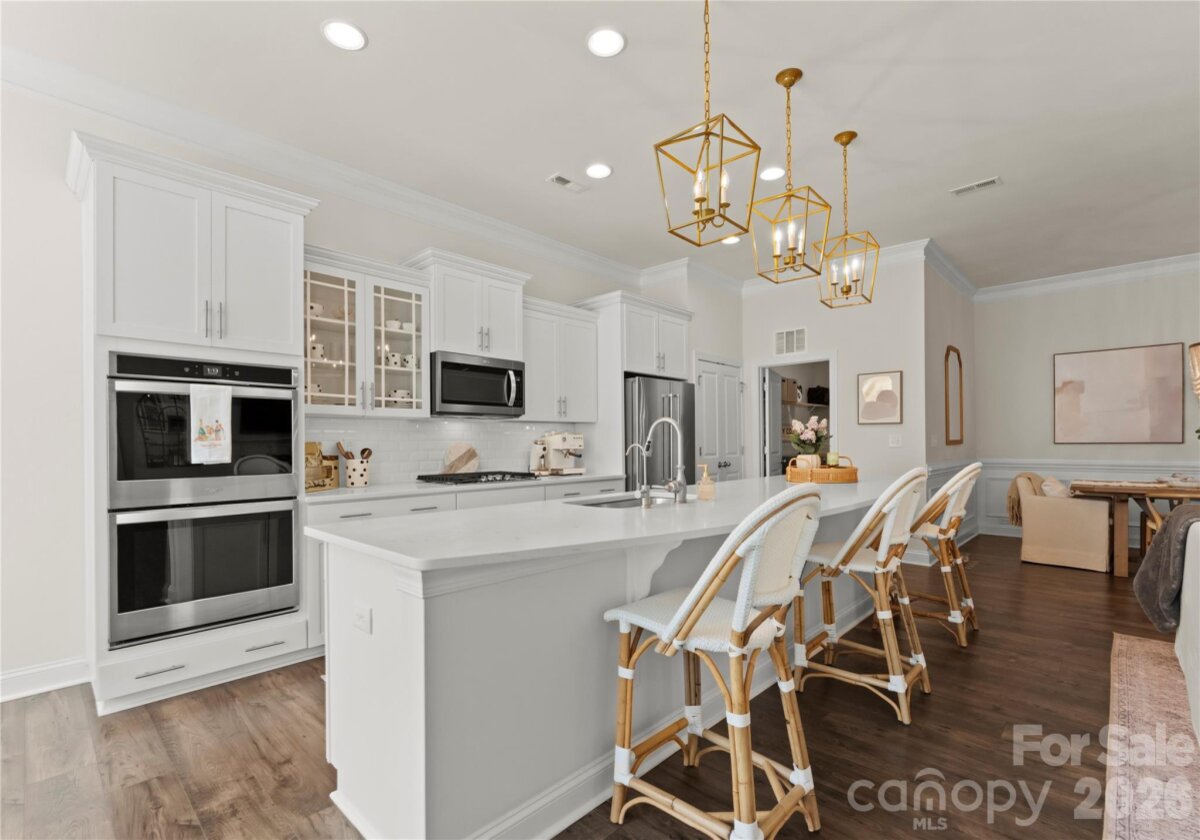 Located in Atwater Landing, this home features a rare and highly sought-after floorplan seldom available in the neighborhood. Thoughtfully upgraded throughout, it offers the perfect blend of comfort, functionality, and elevated design. At the heart of the home is an extraordinary 13-foot kitchen island — a true statement piece designed for gathering. Paired with the home’s open floor plan and 10-foot ceilings throughout the main level, the kitchen, dining, and living areas feel bright, airy, and perfectly suited for entertaining or everyday living. The kitchen also features a gas range and double oven, ideal for both everyday cooking and hosting. The primary suite is conveniently located on the main level, offering privacy and ease of living. It features a custom, professionally installed closet system designed for both beauty and organization. LVP flooring was extended into the downstairs bedrooms, ensuring a seamless and cohesive feel throughout the main level. Step outside to enjoy a spacious screened-in porch that opens directly to an inviting fire pit area with ample space for seating, entertaining, and enjoying outdoor evenings. The fenced backyard provides both privacy and functionality, while mature trees and intentional landscaping create an elegant backdrop for relaxing spring evenings or gathering with friends on warm summer nights. Additional upgrades include updated fixtures throughout the home, Culligan whole-home water filtration and reverse osmosis drinking systems, along with the efficiency and convenience of a tankless water heater The property also includes a paid kayak storage space at Atwater Landing’s private kayak launch area, secured through 1.1.27 — offering convenient access to waterfront living and outdoor recreation. With its rare layout, 10-foot ceilings, main-level primary suite, seamless flooring, fenced yard, and exceptional entertaining spaces, this home presents a truly special opportunity in Atwater Landing.