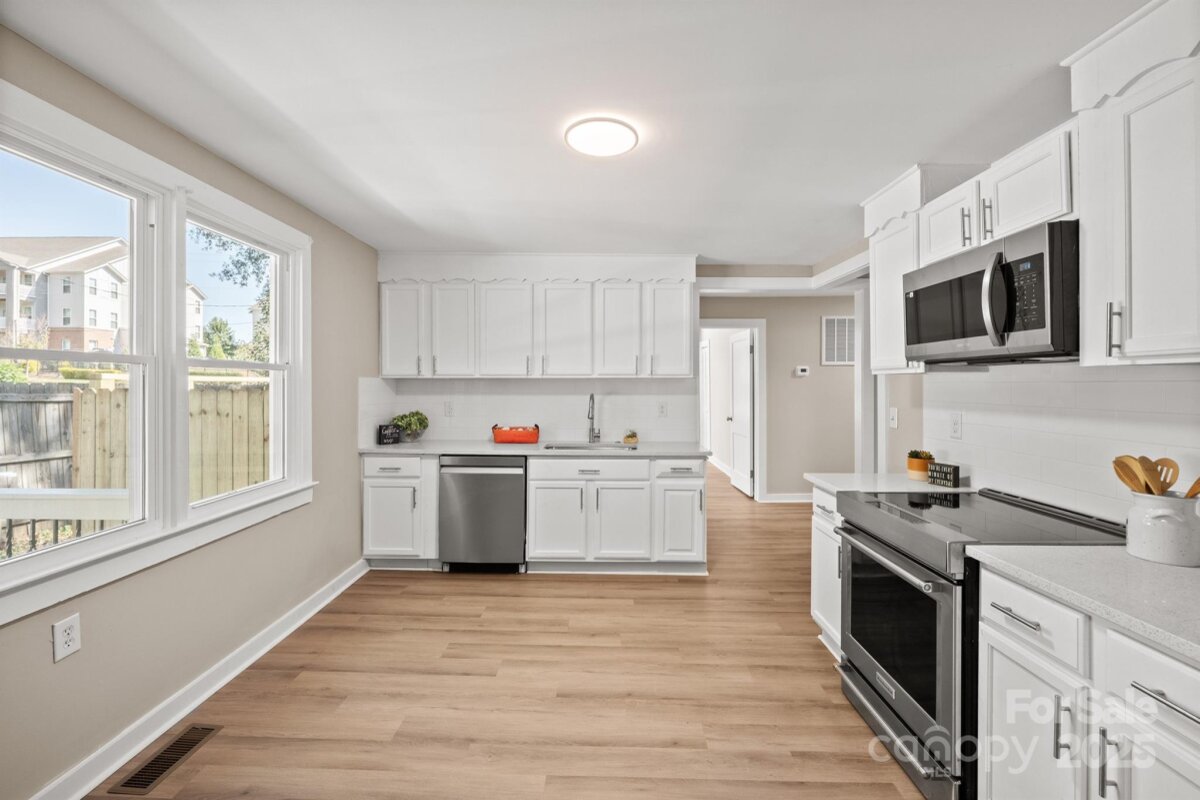 Welcome home to this beautifully updated property featuring new flooring, modern fixtures, a newer HVAC system, and a brand-new roof. Freshly painted inside and out, this home also offers many new windows that fill the space with natural light. The kitchen shines with freshly painted cabinets, quartz counter tops and stylish tile accents. The spacious back deck and storage shed provide extra comfort and functionality. This home also includes stainless steel appliances and a brand new washer and dryer, making it truly move in ready. Conveniently located with easy access to Uptown Charlotte and Charlotte International Airport, this move-in-ready home combines modern upgrades with everyday convenience — a must-see!