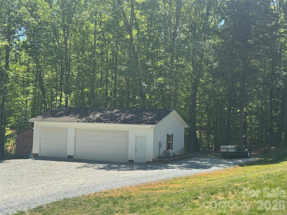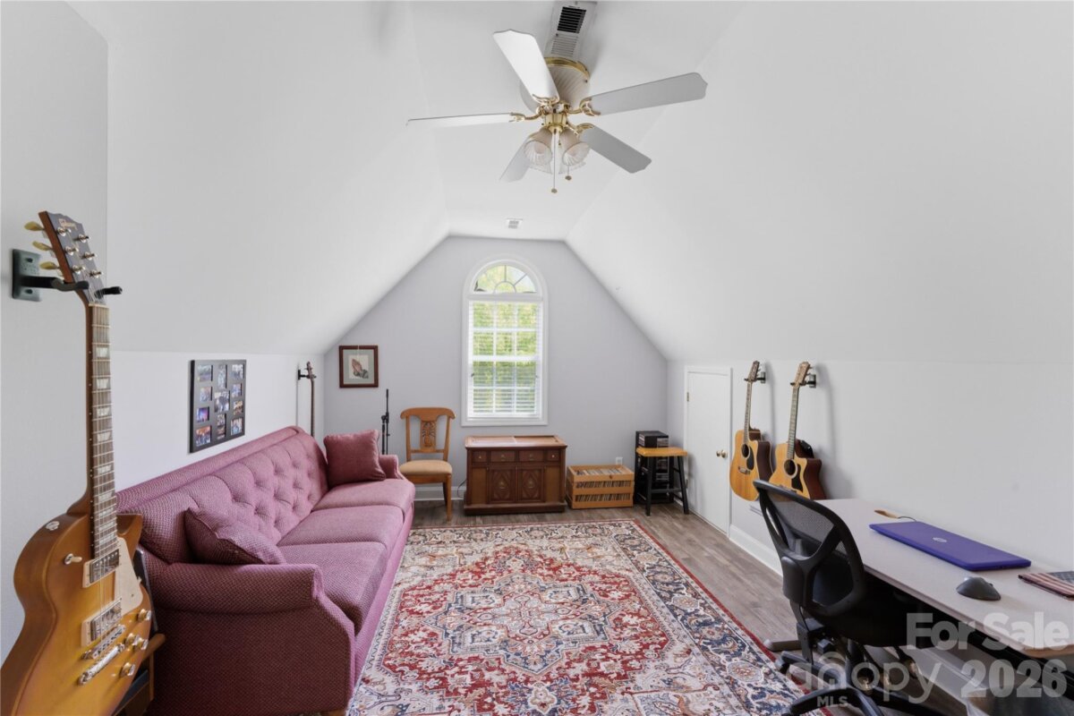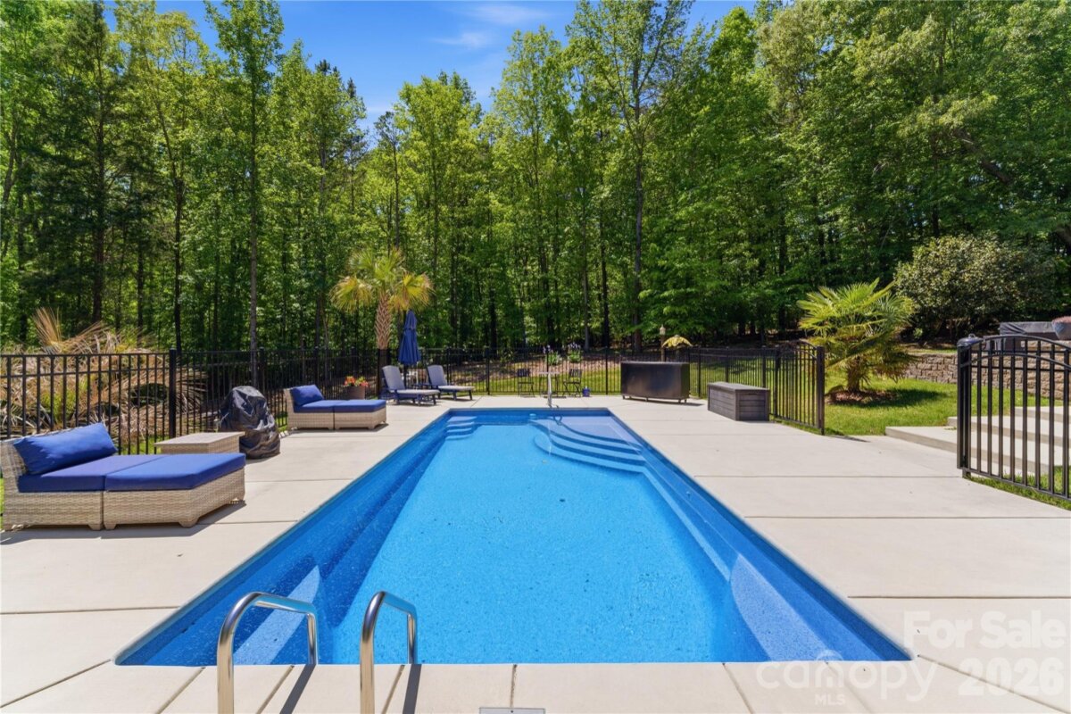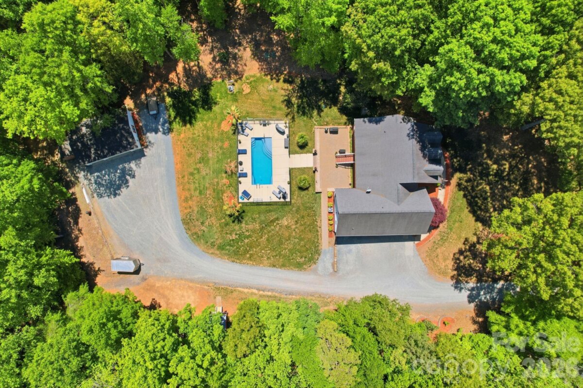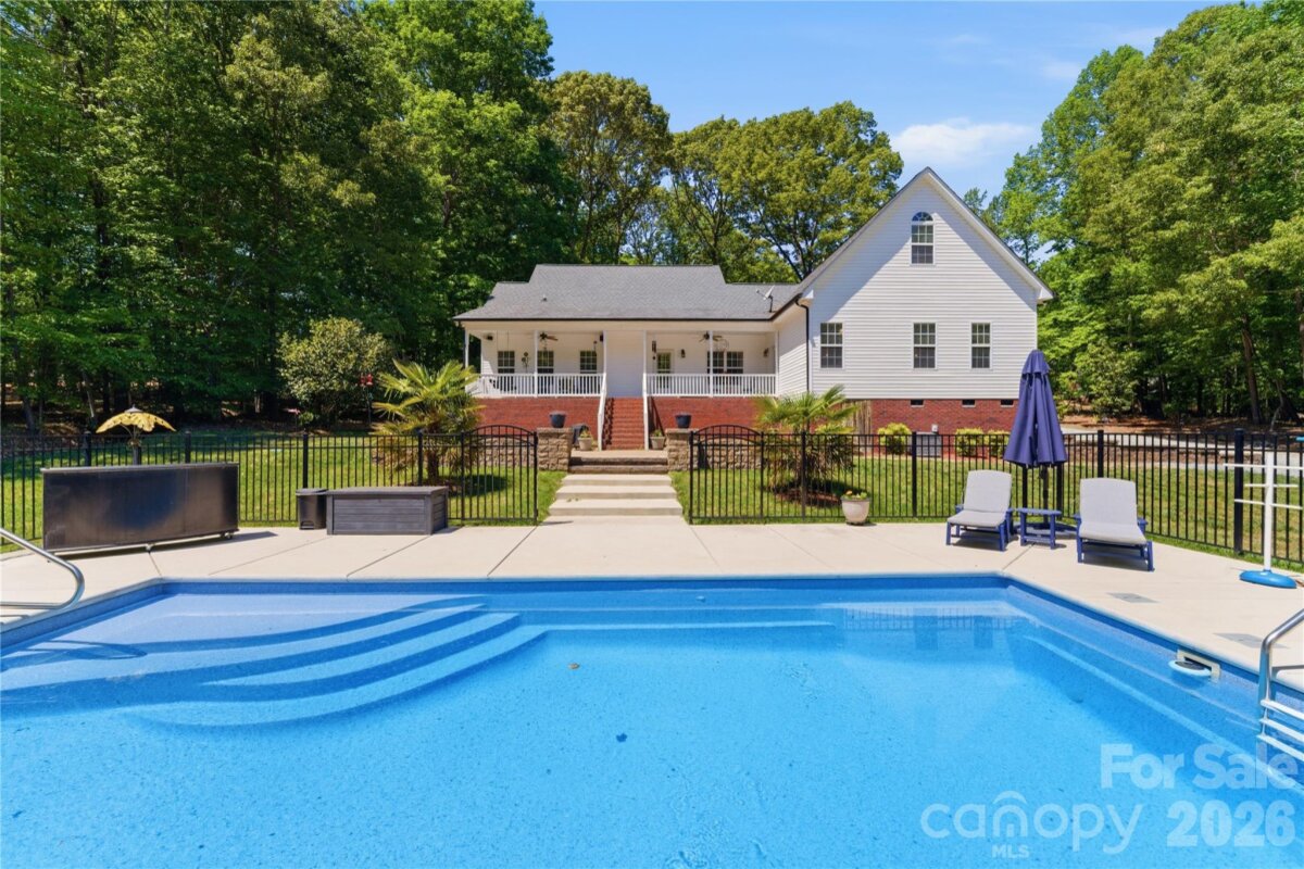 Situated on 3.51 private, wooded acres just minutes from downtown Waxhaw’s charming historic district, this one-owner home has been well maintained and offers a rare blend of privacy, space, and lifestyle—close to shops, restaurants, and local events, yet quietly tucked away from it all. A welcoming covered front porch—anchored by a charming entry and striking red front door—sets the tone as you arrive, leading into a thoughtfully designed home with a functional and inviting layout. The main living area is open and welcoming, with a vaulted ceiling, warm wood floors, a great room with fireplace, and a seamless flow into the dining area and kitchen—ideal for both everyday living and entertaining. The kitchen is filled with natural light and features abundant wood cabinetry and generous counter space, all at the heart of the home. A desirable split-bedroom floor plan provides privacy, with the primary suite on one side, featuring a spacious private bath complete with a soaking tub, walk-in shower, and a large walk-in closet. Two additional bedrooms are located on the opposite side with a full bath in between. Upstairs, two versatile bonus spaces offer flexibility for a variety of uses. One is a private room with its own half bath—perfect as a bedroom, guest room, office/flex space, or second living area—while the open bonus area, currently used as a sewing room, would make an excellent home office, media room, artist studio, or additional living space. The attached 2-car garage has finished walls and an additional storage closet, adding everyday convenience and functionality. Step outside and the property truly stands out! The private backyard is designed for both relaxation and entertaining, featuring a full-length covered back porch that overlooks an expansive stone terrace/patio and in-ground swimming pool. The stone terrace adds warmth and character, creating an inviting space to gather, unwind, and enjoy the peaceful, wooded setting. The in-ground pool becomes the centerpiece of outdoor living during the warmer months—perfect for hosting summer parties, weekend cookouts, or simply enjoying a quiet afternoon by the water. With plenty of room for lounge seating, dining, and entertaining, this backyard offers a seamless blend of comfort and functionality, making it ideal for both intimate evenings and larger gatherings. Beyond the immediate backyard, the land opens up to a beautiful natural setting with a creek along the rear of the property. With usable acreage and a mix of open and wooded space, this property is well-suited for a variety of lifestyles— including keeping chickens, maintaining gardens, as well as horses and other livestock. A small outbuilding with fenced area is currently serving as a storage building with a small dog house and fenced dog yard. This would also make an excellent chicken coop. In addition to the main home, there is a two-car carport and a detached 3-car garage. Two bays of the garage function as a traditional garage space, while the third bay has been finished as a man-cave with bar and upgraded interior—ideal for hobbies, entertaining, or a separate retreat. (bar is removable - but may stay if buyer desires). With acreage, privacy, no HOA and a location just minutes from the heart of Waxhaw, this is a rare opportunity to enjoy both convenience and country living.