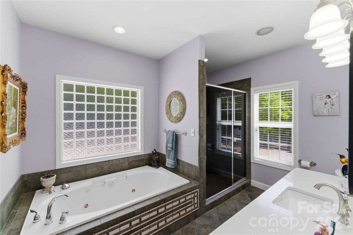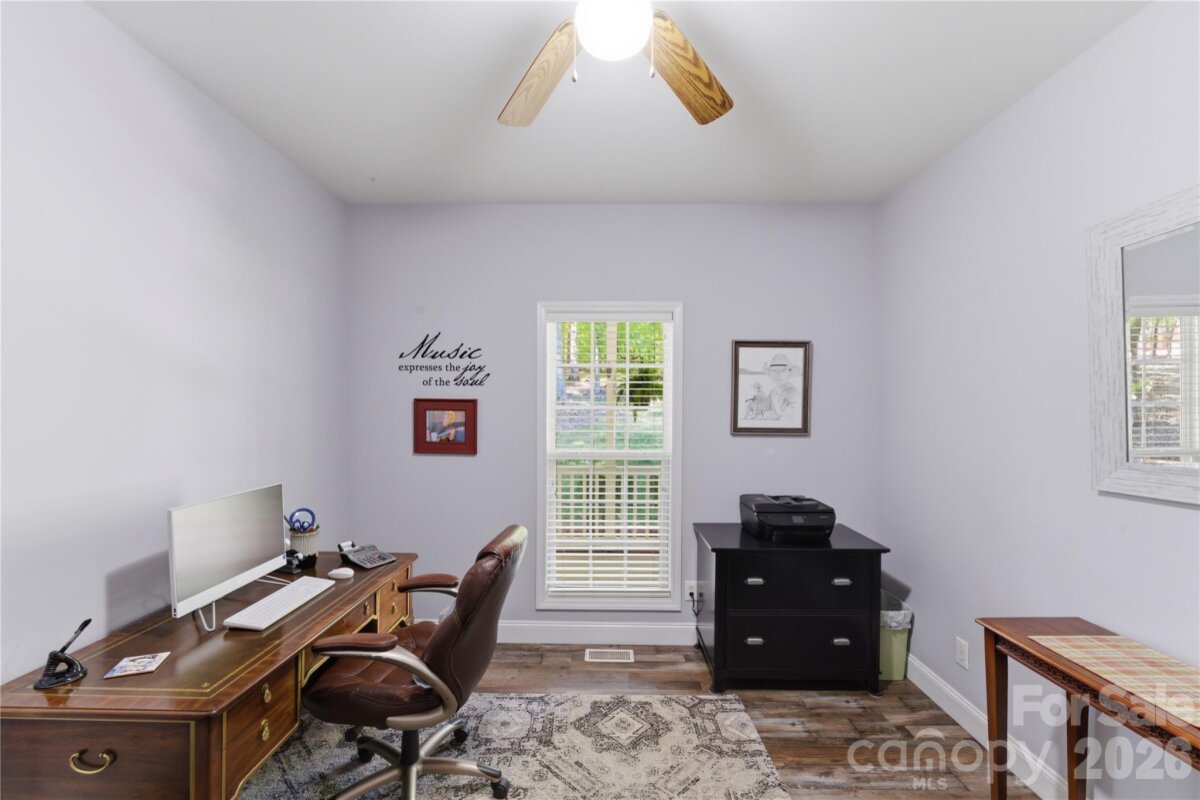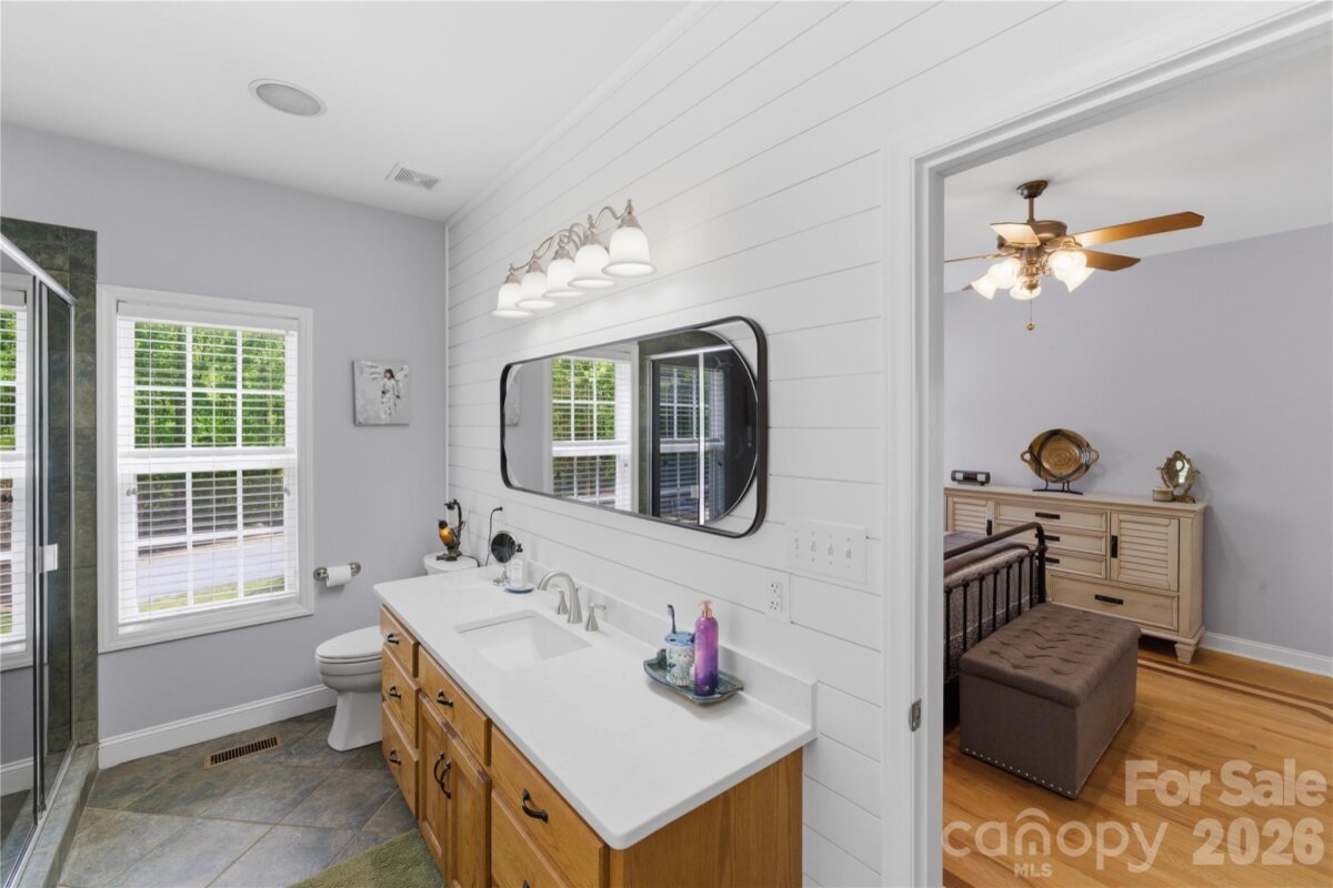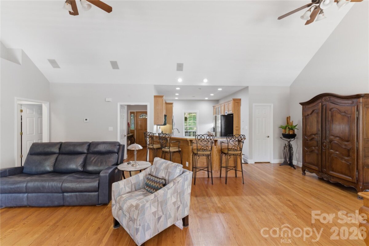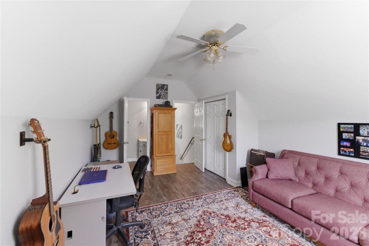 Situated on 3.51 private, wooded acres just minutes from downtown Waxhaw’s charming historic district, this one-owner home has been well maintained and offers a rare blend of privacy, space, and lifestyle—close to shops, restaurants, and local events, yet quietly tucked away from it all. A welcoming covered front porch—anchored by a charming entry and striking red front door—sets the tone as you arrive, leading into a thoughtfully designed home with a functional and inviting layout. The main living area is open and welcoming, with a vaulted ceiling, warm wood floors, a great room with fireplace, and a seamless flow into the dining area and kitchen—ideal for both everyday living and entertaining. The kitchen is filled with natural light and features abundant wood cabinetry and generous counter space, all at the heart of the home. A desirable split-bedroom floor plan provides privacy, with the primary suite on one side, featuring a spacious private bath complete with a soaking tub, walk-in shower, and a large walk-in closet. Two additional bedrooms are located on the opposite side with a full bath in between. Upstairs, two versatile bonus spaces offer flexibility for a variety of uses. One is a private room with its own half bath—perfect as a bedroom, guest room, office/flex space, or second living area—while the open bonus area, currently used as a sewing room, would make an excellent home office, media room, artist studio, or additional living space. The attached 2-car garage has finished walls and an additional storage closet, adding everyday convenience and functionality. Step outside and the property truly stands out! The private backyard is designed for both relaxation and entertaining, featuring a full-length covered back porch that overlooks an expansive stone terrace/patio and in-ground swimming pool. The stone terrace adds warmth and character, creating an inviting space to gather, unwind, and enjoy the peaceful, wooded setting. The in-ground pool becomes the centerpiece of outdoor living during the warmer months—perfect for hosting summer parties, weekend cookouts, or simply enjoying a quiet afternoon by the water. With plenty of room for lounge seating, dining, and entertaining, this backyard offers a seamless blend of comfort and functionality, making it ideal for both intimate evenings and larger gatherings. Beyond the immediate backyard, the land opens up to a beautiful natural setting with a creek along the rear of the property. With usable acreage and a mix of open and wooded space, this property is well-suited for a variety of lifestyles— including keeping chickens, maintaining gardens, as well as horses and other livestock. A small outbuilding with fenced area is currently serving as a storage building with a small dog house and fenced dog yard. This would also make an excellent chicken coop. In addition to the main home, there is a two-car carport and a detached 3-car garage. Two bays of the garage function as a traditional garage space, while the third bay has been finished as a man-cave with bar and upgraded interior—ideal for hobbies, entertaining, or a separate retreat. (bar is removable - but may stay if buyer desires). With acreage, privacy, no HOA and a location just minutes from the heart of Waxhaw, this is a rare opportunity to enjoy both convenience and country living.