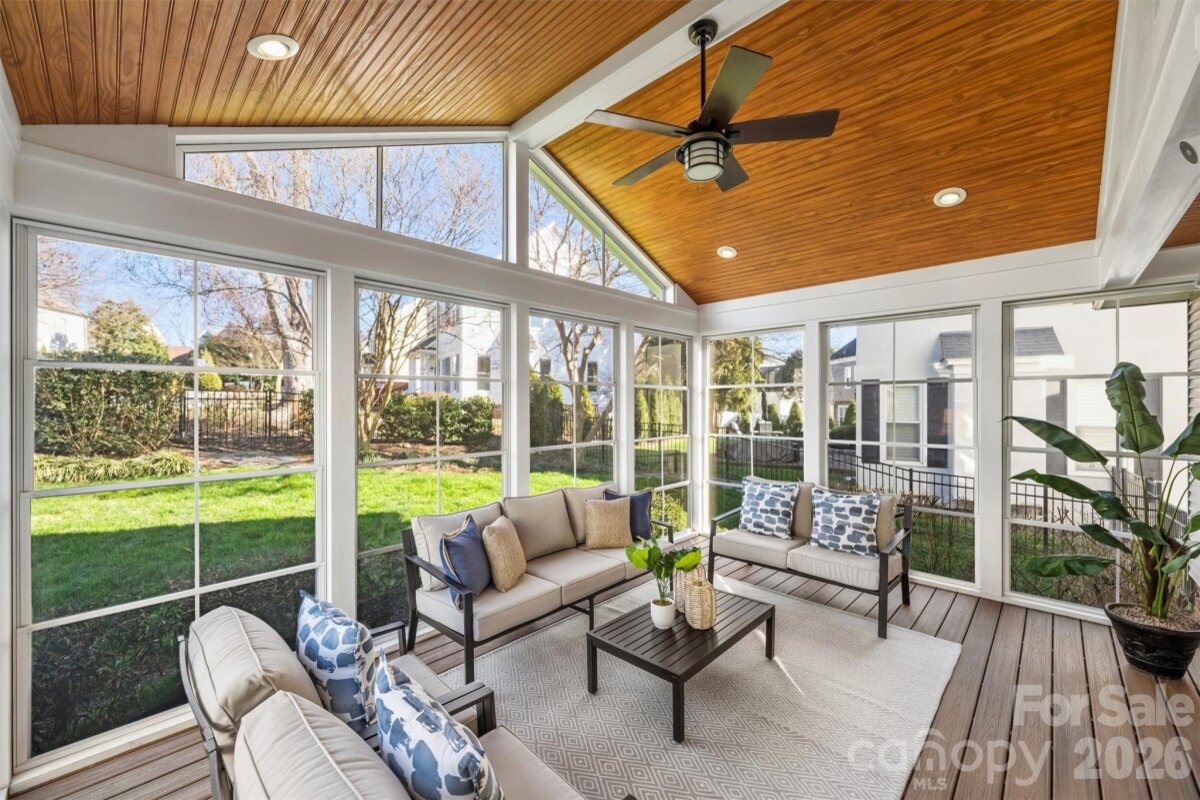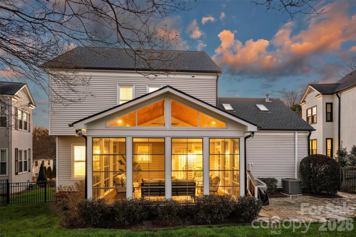 Welcome home to 3507 Selwyn Farms Lane, nestled on a quiet, tree-lined street in highly desirable Selwyn Farms neighborhood, a pocket neighborhood sitting between Myers Park, Sedgefield & Ashbrook. This beautifully maintained, move-in-ready Saussy Burbank home features a new roof and gutters (2025), refinished hardwood floors throughout—including stairs—and refreshed neutral paint. The thoughtfully designed 4-bedroom, 2.5-bath floor plan offers 9’ ceilings, abundant natural light, and meticulous upgrades throughout. The bright, updated gourmet kitchen includes custom shaker-style cherry cabinetry with crown molding, quartz countertops, subway tile backsplash, under-cabinet and recessed lighting, pantry, and stainless steel appliances. The elegant dining room opens to the inviting living room with AV wiring, speakers, and a cozy gas fireplace—perfect for everyday living and entertaining. Upstairs, the spacious primary suite boasts vaulted ceilings, a custom walk-in closet, and an updated en-suite bath with walk-in shower. Three additional bedrooms offer generous space, custom closets, and flexible use, including a bonus room option. Enjoy outdoor living on the private three-season porch with Trex decking, EZ Breeze windows, tongue-and-groove ceiling, and views of the fenced backyard with flagstone patio and gas grill hookup. Additional features include tankless water heater (2018), new Velux skylights (2025), upgraded Lennox HVAC (2018) with air purification, oversized epoxy-floored garage, irrigation, mature landscaping, and expanded driveway. Convenient to South End, the light rail, Uptown, parks, dining, shopping, and top-rated schools—Dilworth Elementary, Sedgefield Middle, and Myers Park High. A rare opportunity for in-town living at its finest. Fireplace is sold in "as-is" condition with no problems known.