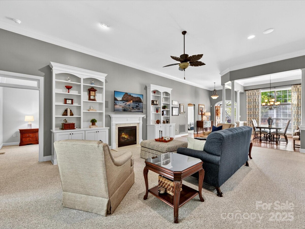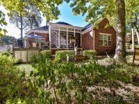 Welcome home to this exceptional full-brick custom ranch built by one of the area’s top builders, perfectly situated on a large, private, wooded lot with mature landscaping and multiple outdoor entertainment spaces. From the moment you enter, you’ll appreciate the true hardwood flooring, attention to detail, and custom craftsmanship throughout — from the elegant moldings to the built-in bookcases flanking the cozy fireplace. The spacious family kitchen offers solid wood custom cabinetry, abundant storage, gas cooking, and even space for your own coffee bar — perfect for everyday living or entertaining in style. The open great room seamlessly flows to a one-of-a-kind screened porch, where you can enjoy the outdoors year-round without worrying about pollen or weather. The Easy-Breezy Brand porch is truly entertaining in style. Step down to a maintenance-free Trex deck and custom travertine patio with a movable fireplace — ideal for gatherings or quiet evenings under the trees. The primary suite impresses with its generous 21' x 15' size, dual walk-in closets, garden tub, and updated separate shower. Two additional bedrooms share a spacious Jack-and-Jill bath, each with walk-in closets. Upstairs, you’ll find a large bonus room or fourth bedroom with a full bath and walk-in closet — a perfect guest suite or flex space. Hate pull-down attic stairs? You’ll love the walk-in attic storage — ideal for easy organization. A three-car garage completes this incredible home in one of the area’s most desirable custom home communities. Truly a rare find — quality, comfort, and craftsmanship all in one!